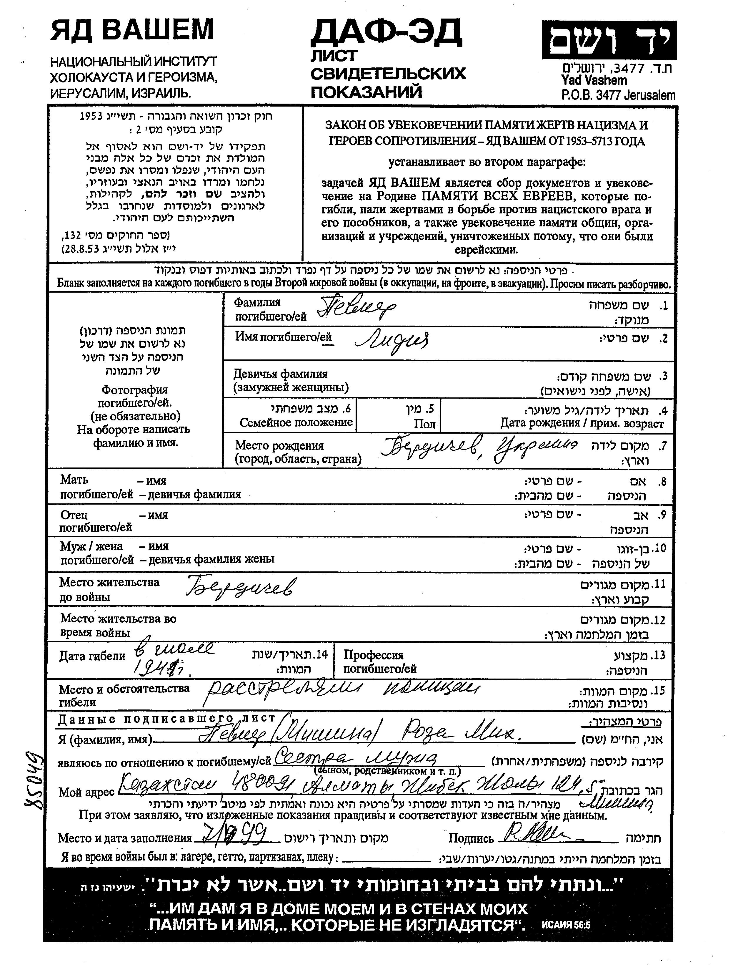 Yad Vashem - Pages of Testimony Names Memorial Collection