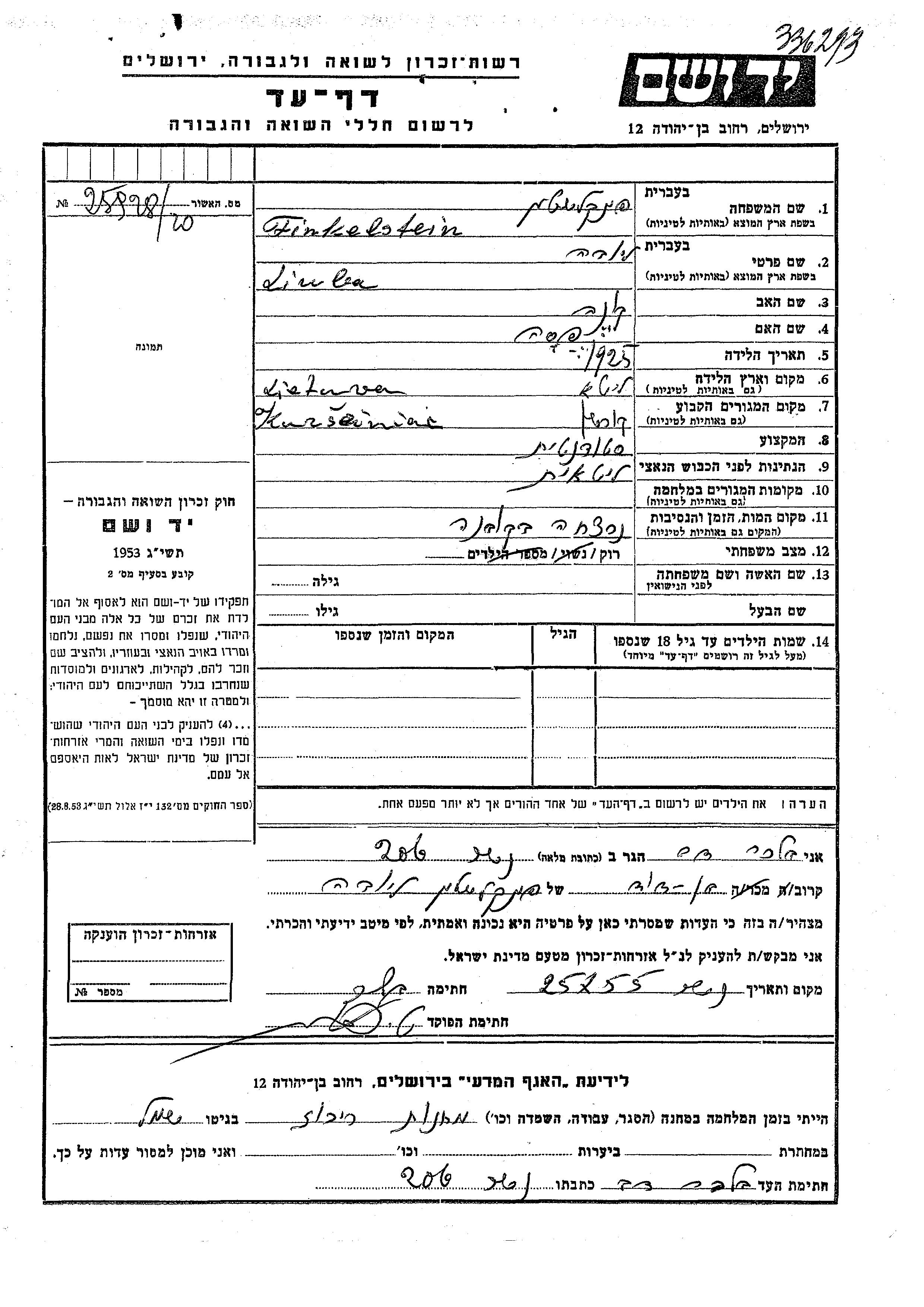 Yad Vashem - Pages of Testimony Names Memorial Collection