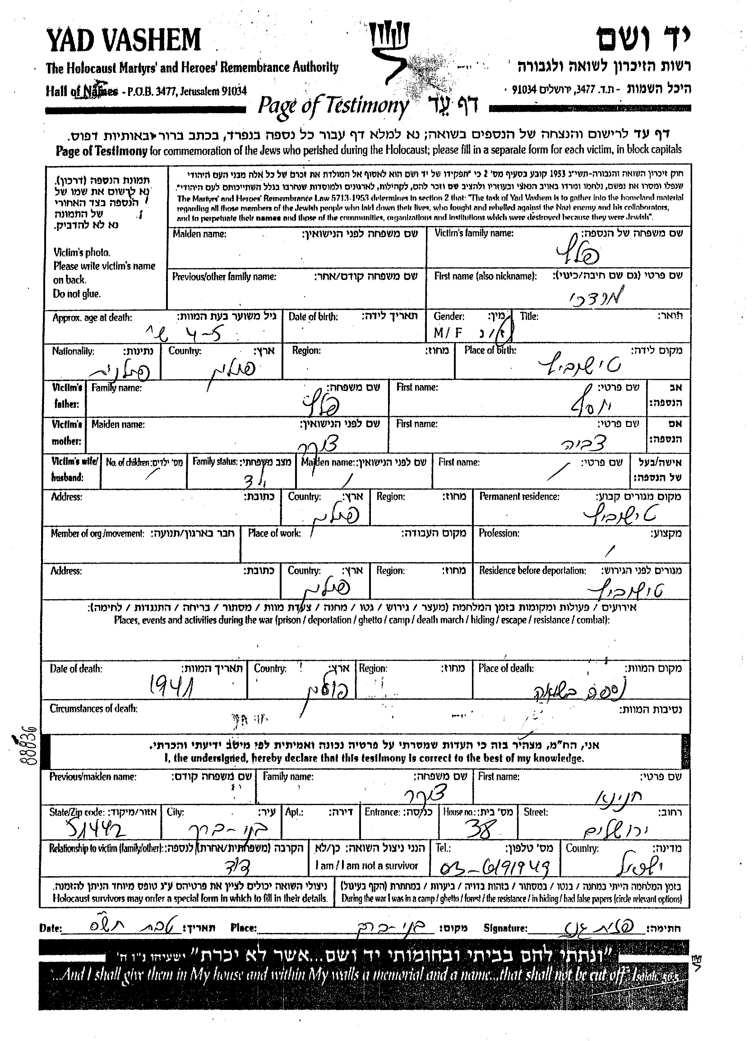 Yad Vashem - Pages of Testimony Names Memorial Collection