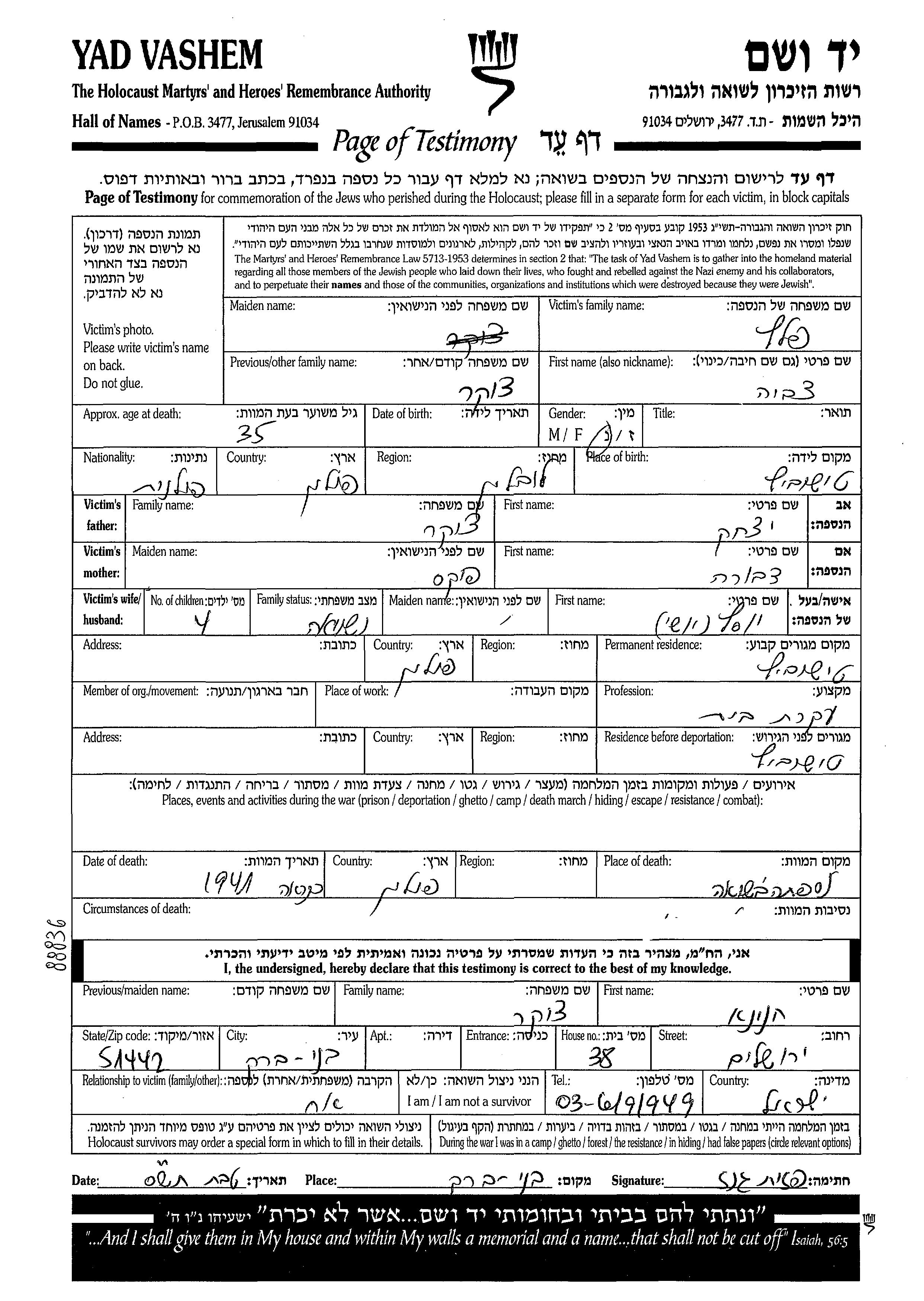 Recherche par date de la mort pendant la période de la Shoah: 1933-1945. Sélectionnez 'Exact'; dans la liste pour rechercher l'année exacte, ou sélectionner '+/- 2 ans'; ou '+/- 5 ans