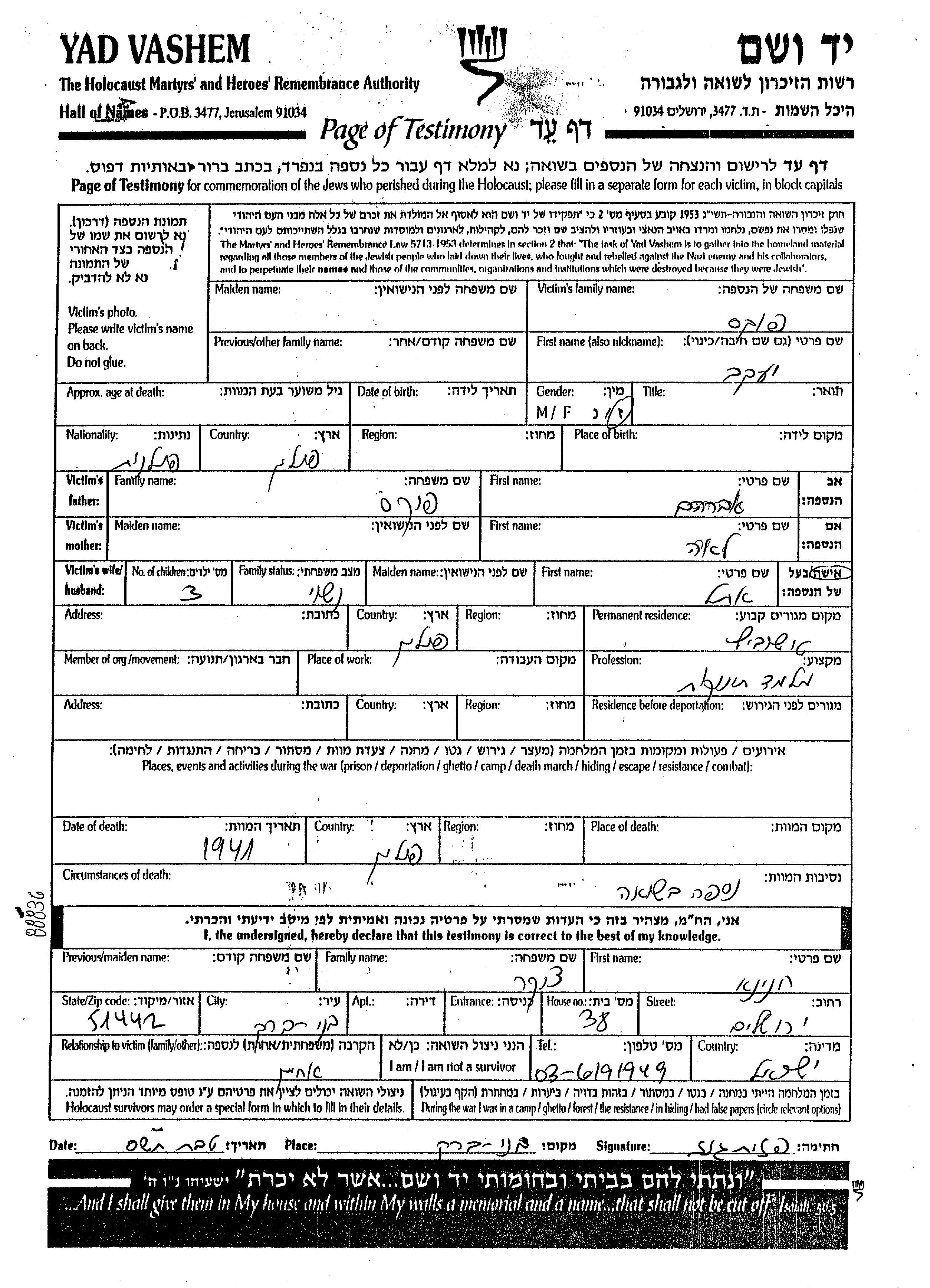 Yad Vashem - Pages of Testimony Names Memorial Collection