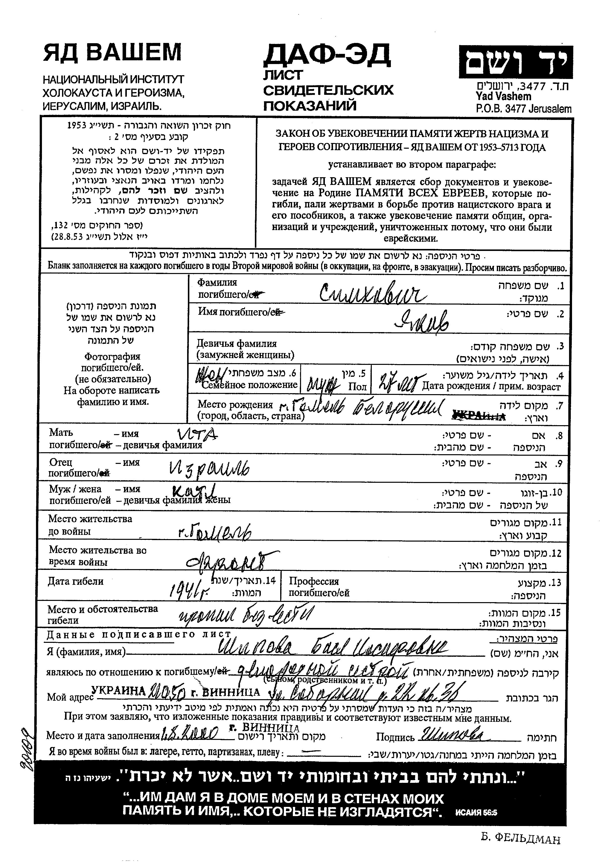 Yad Vashem - Pages of Testimony Names Memorial Collection