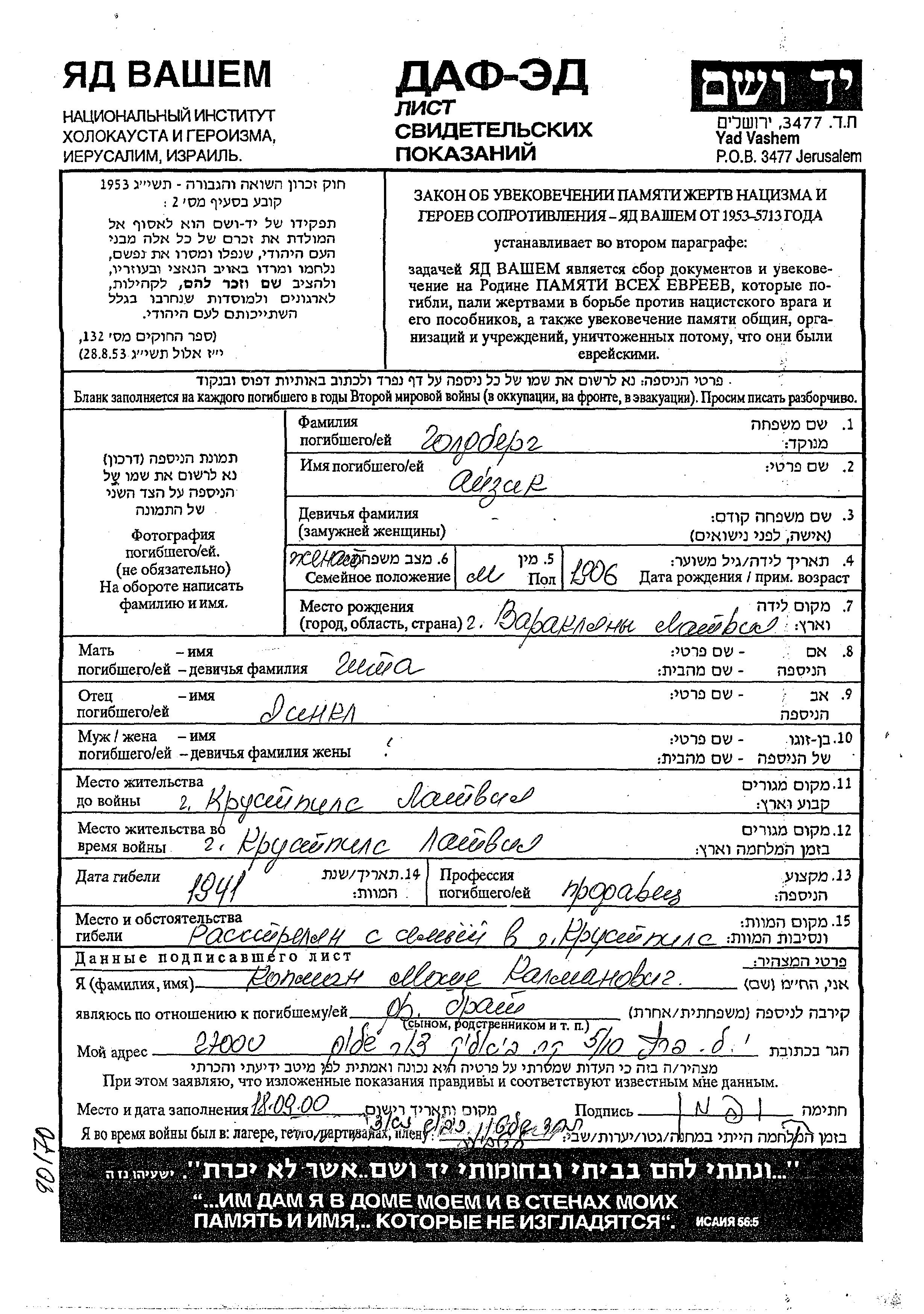 Yad Vashem - Pages of Testimony Names Memorial Collection