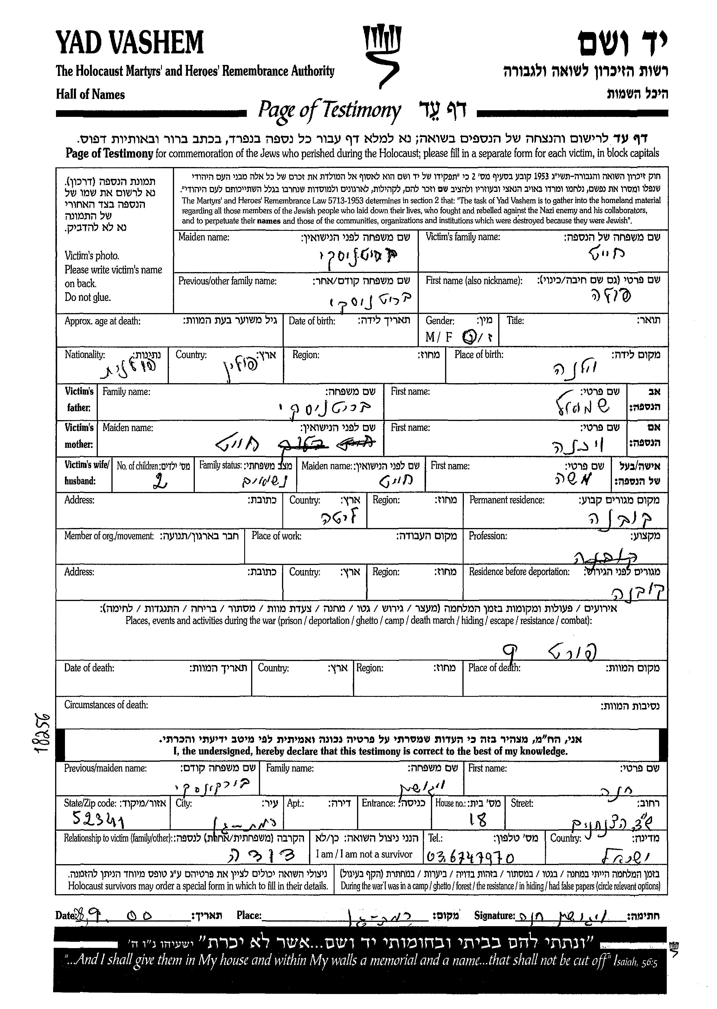 Yad Vashem - Pages of Testimony Names Memorial Collection
