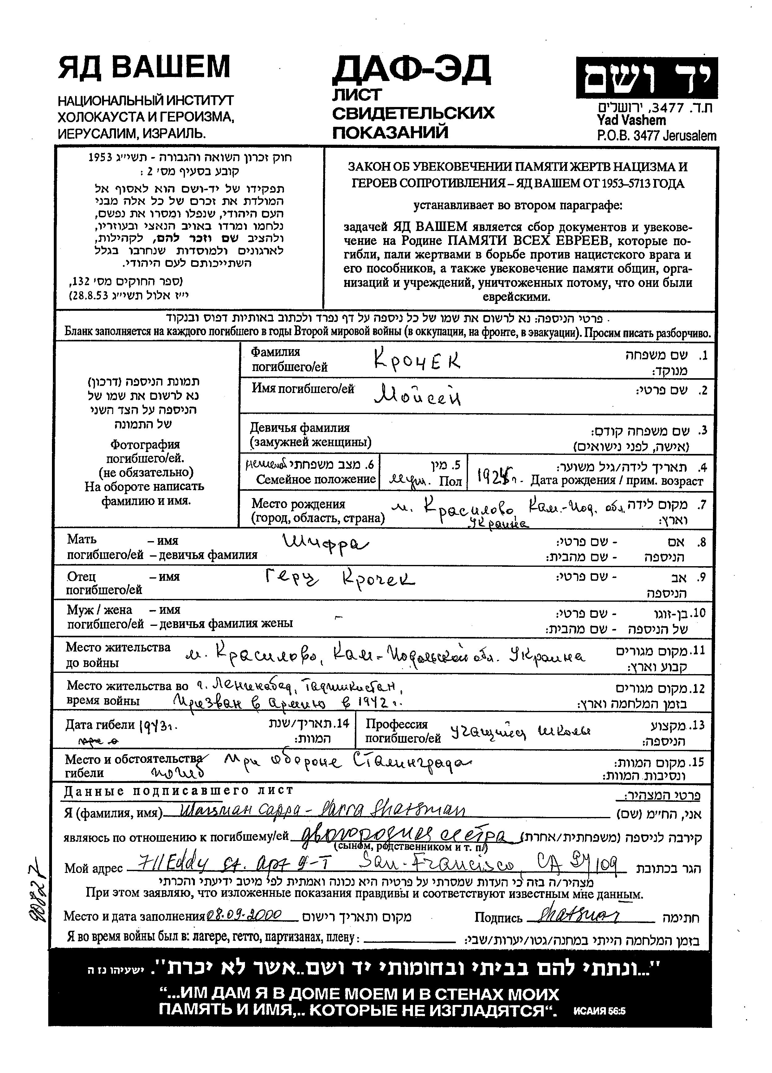 Parmi les soldats juifs tués pendant la Seconde Guerre mondiale, en particulier dans les rangs de l'Armée rouge, des dizaines de milliers d'entre-eux, internés comme prisonniers de guerre, ont été désignés comme Juifs et assassinés en captivité.