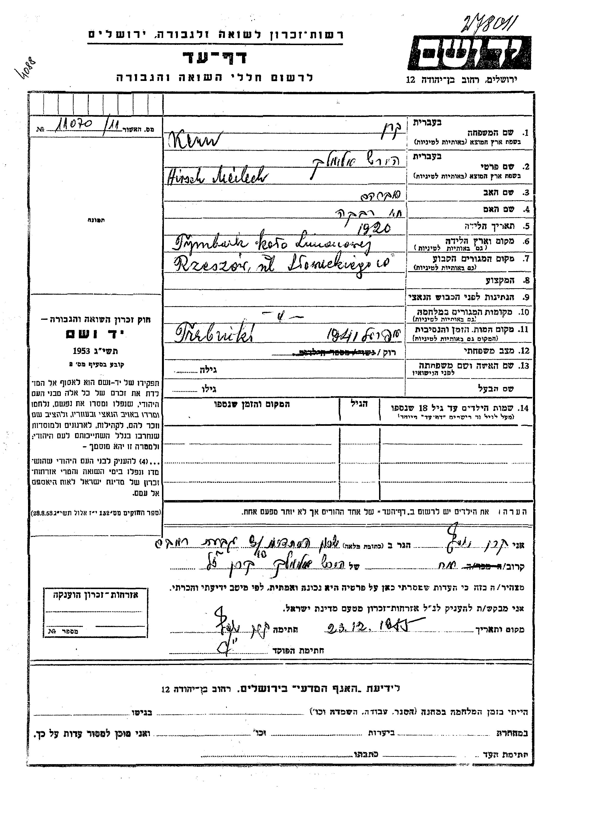 Recherche par date de la mort pendant la période de la Shoah: 1933-1945. Sélectionnez 'Exact'; dans la liste pour rechercher l'année exacte, ou sélectionner '+/- 2 ans'; ou '+/- 5 ans