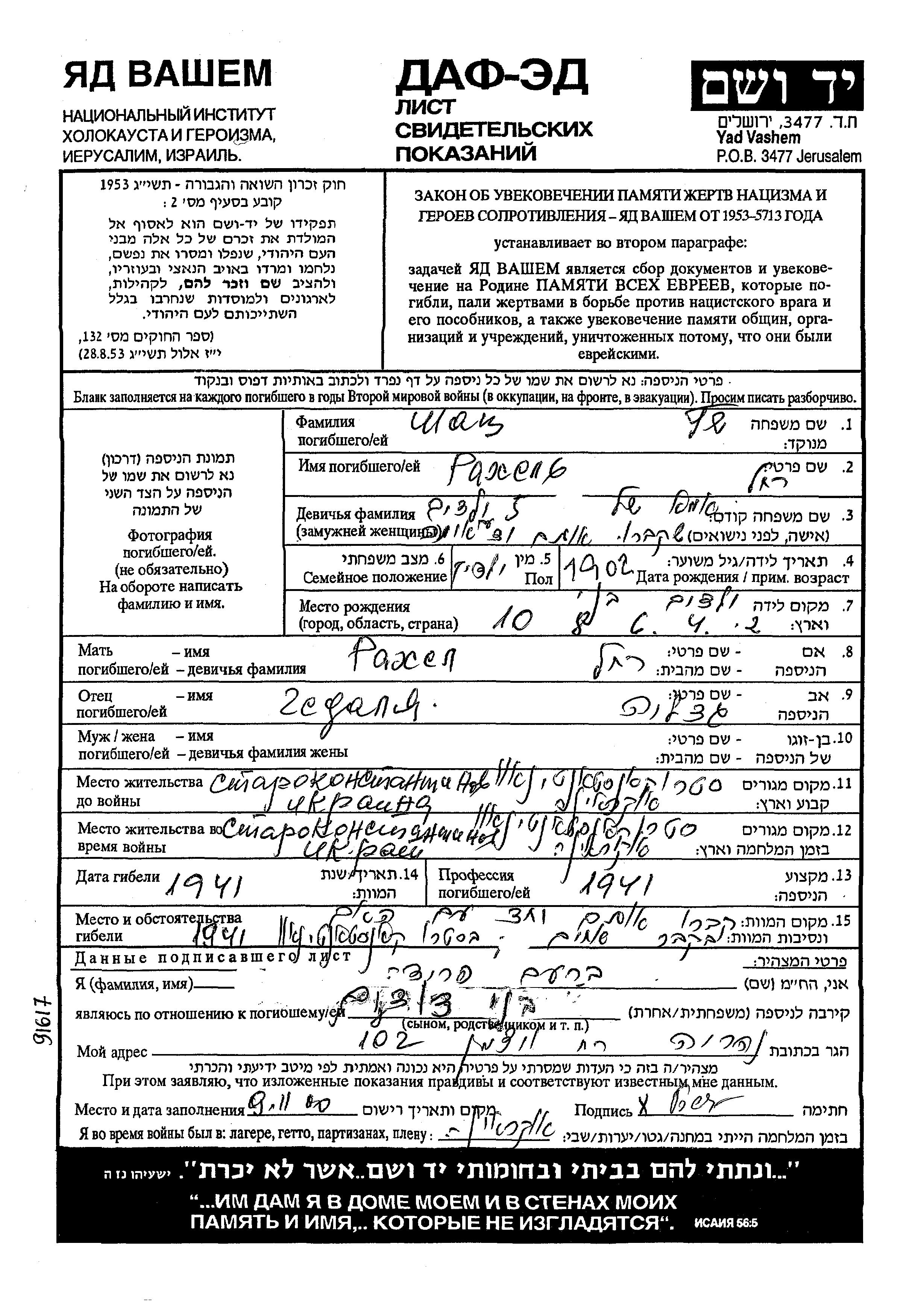 Yad Vashem - Pages of Testimony Names Memorial Collection