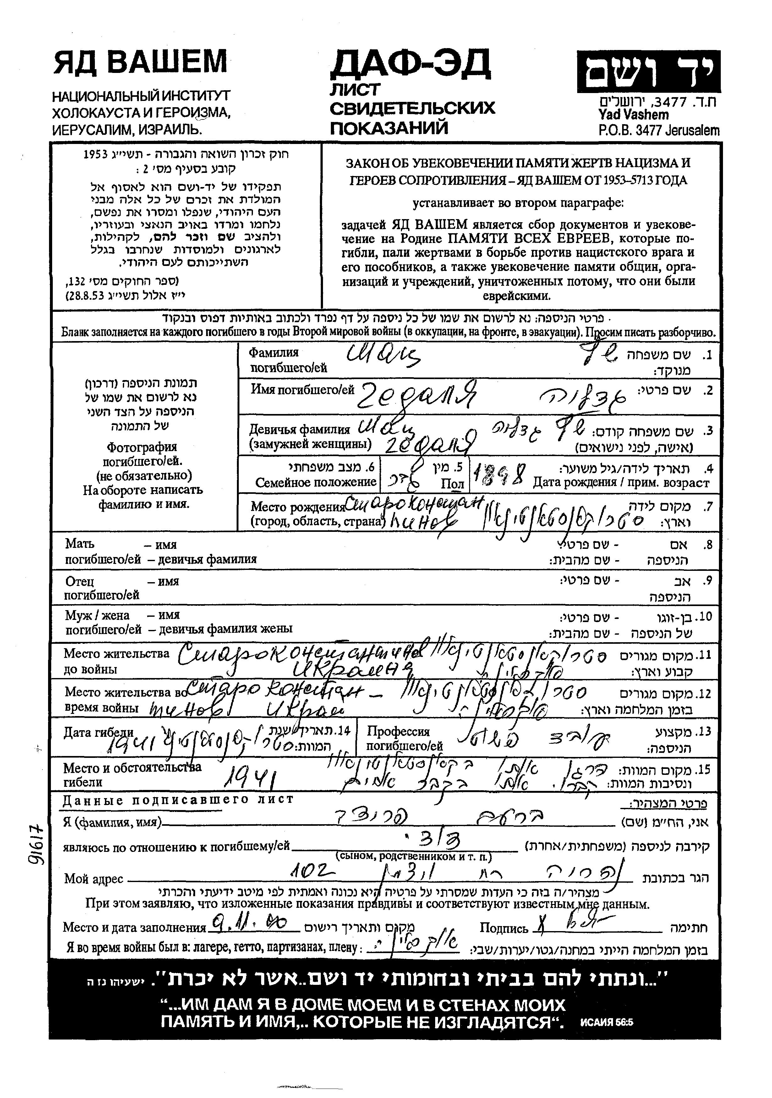 Yad Vashem - Pages of Testimony Names Memorial Collection