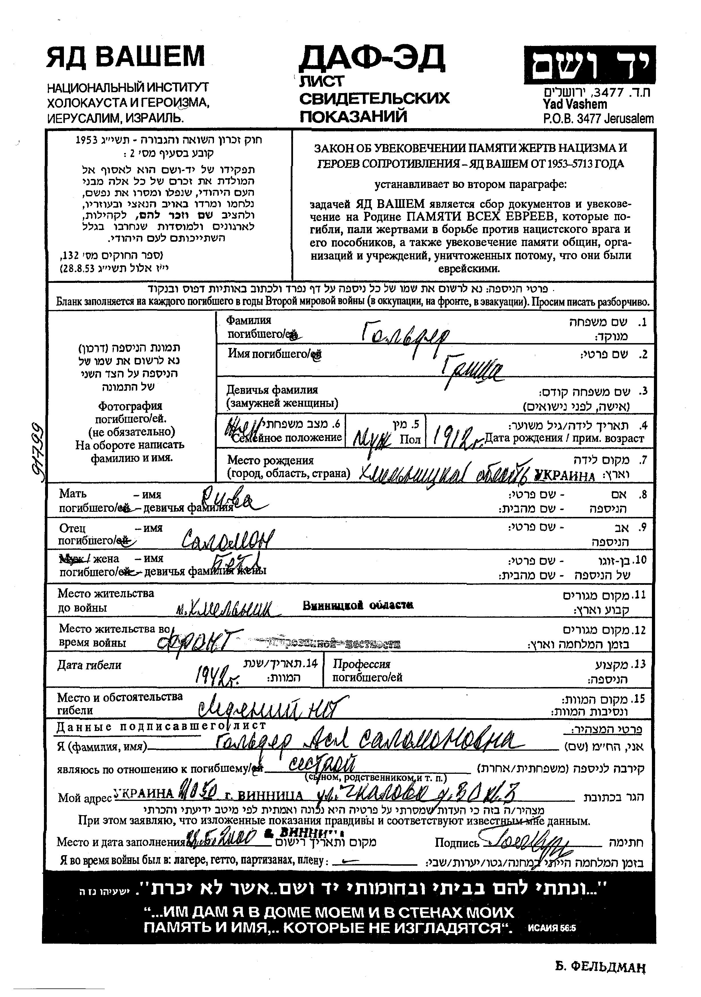 Yad Vashem - Pages of Testimony Names Memorial Collection