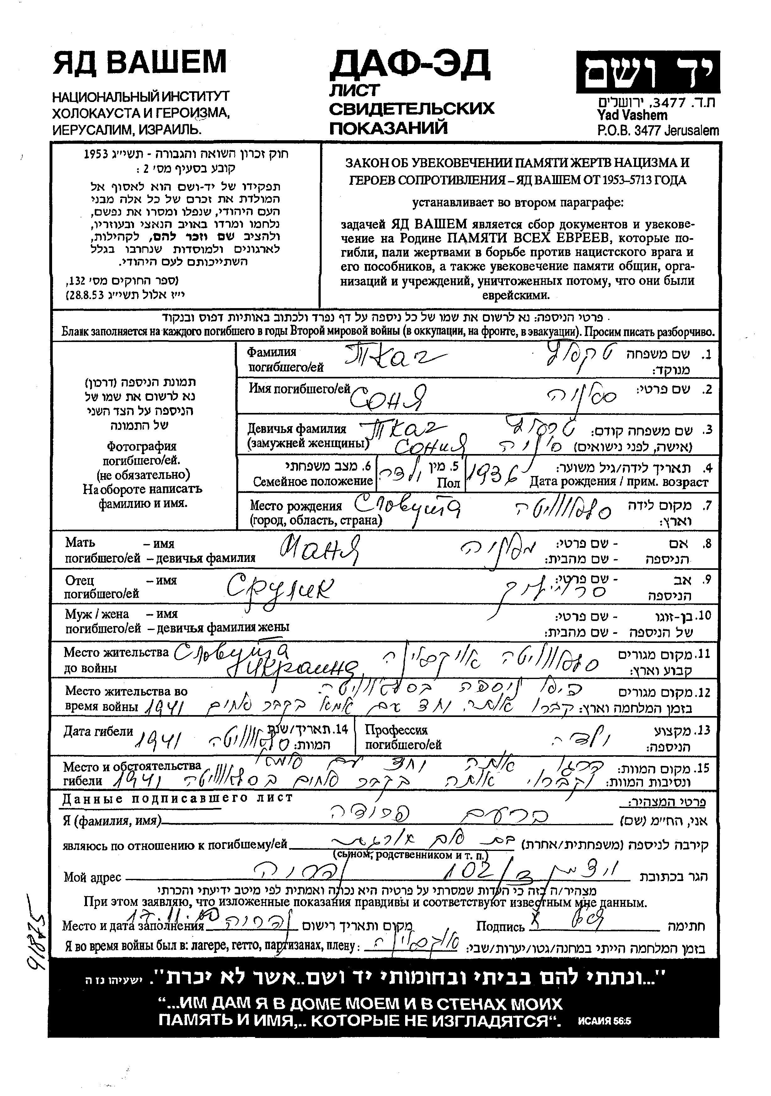 Yad Vashem - Pages of Testimony Names Memorial Collection