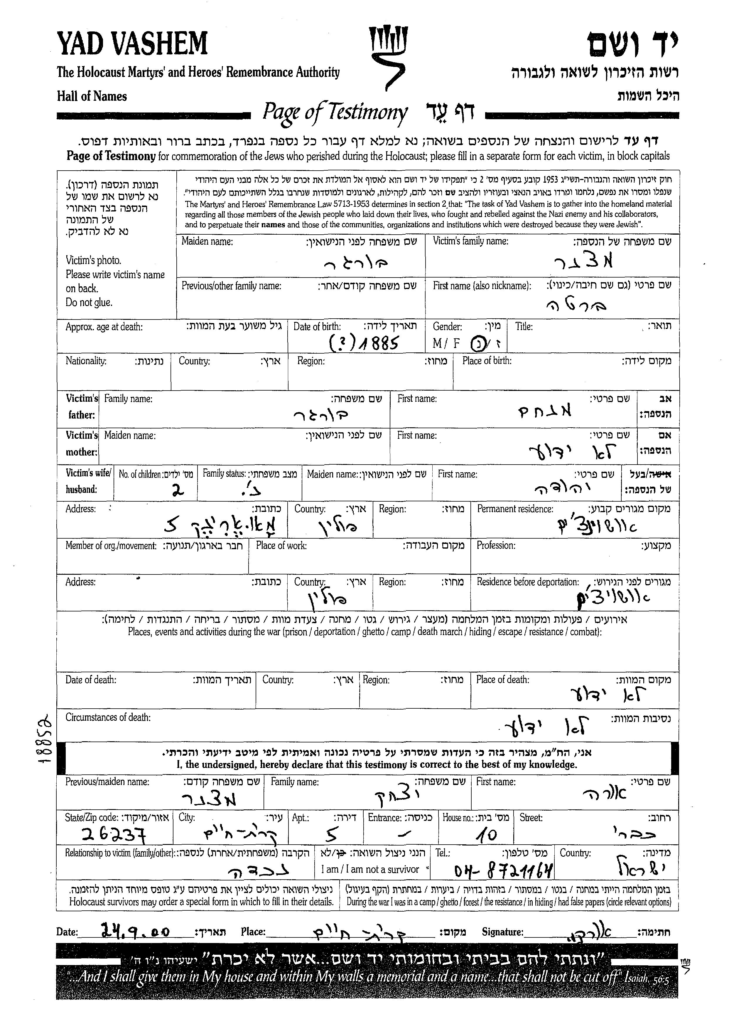 Yad Vashem - Pages of Testimony Names Memorial Collection