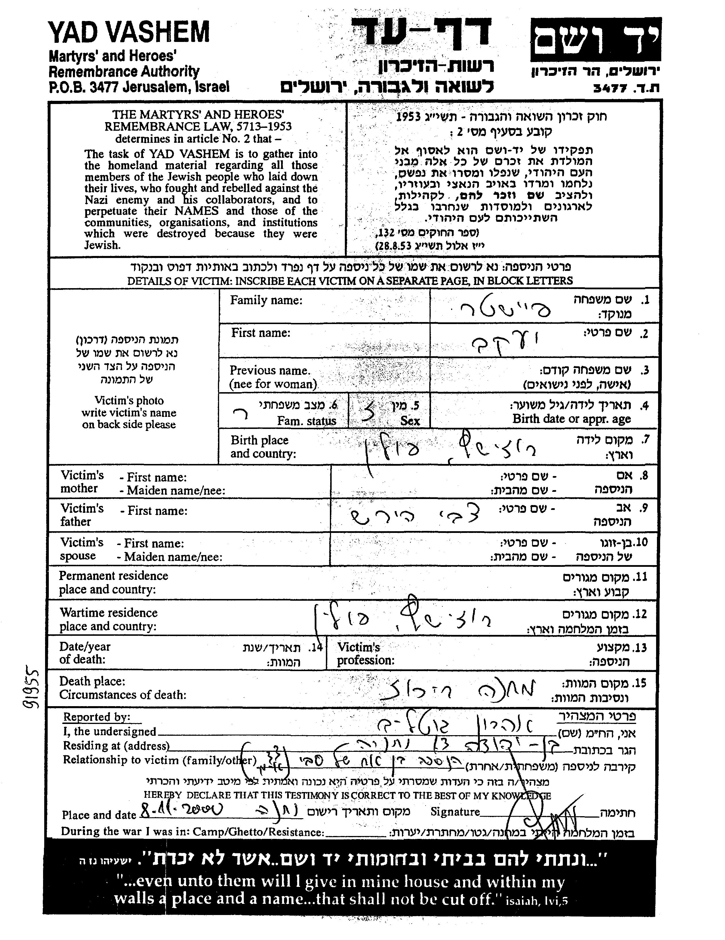 Yad Vashem - Pages of Testimony Names Memorial Collection