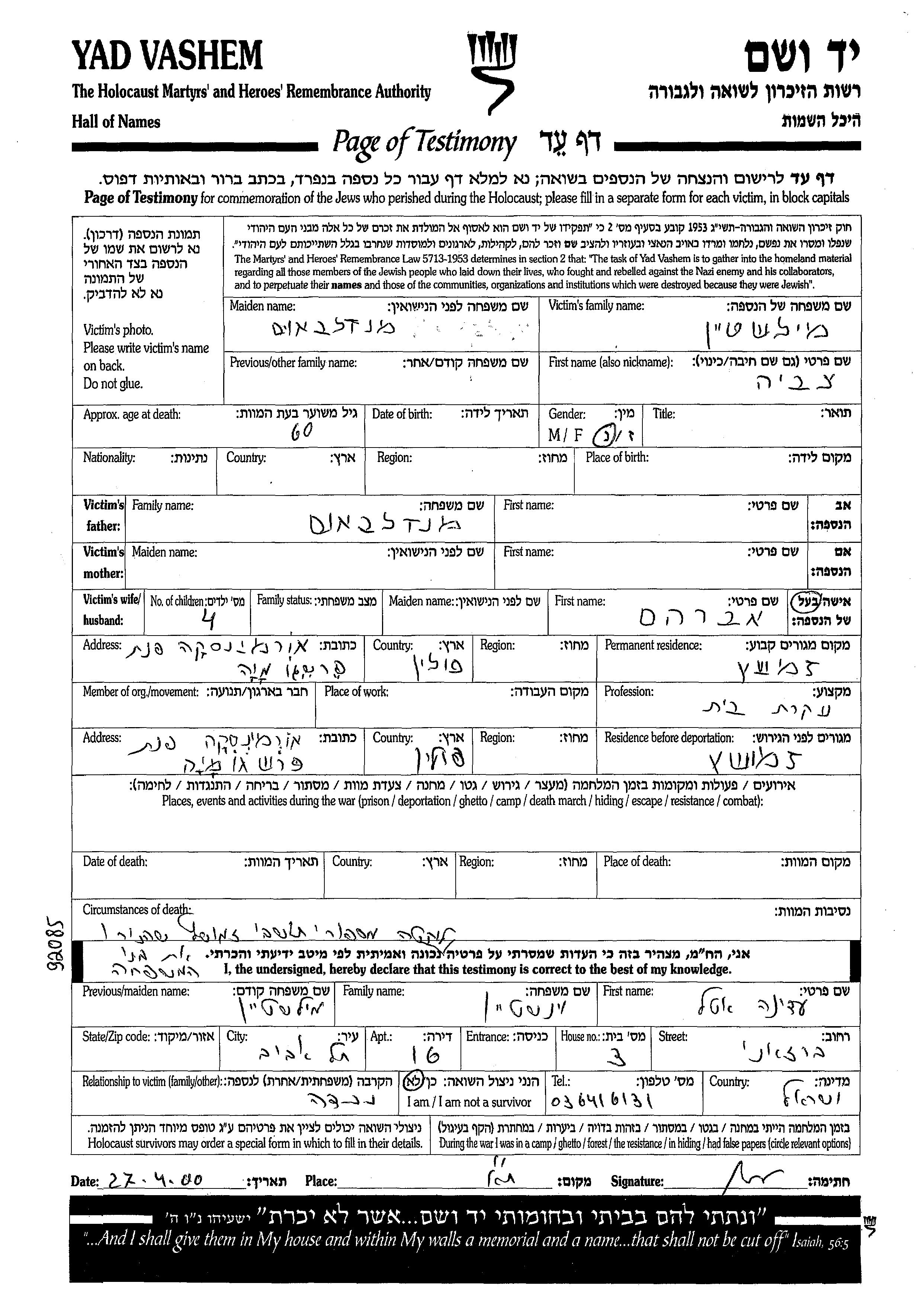 Yad Vashem - Pages of Testimony Names Memorial Collection
