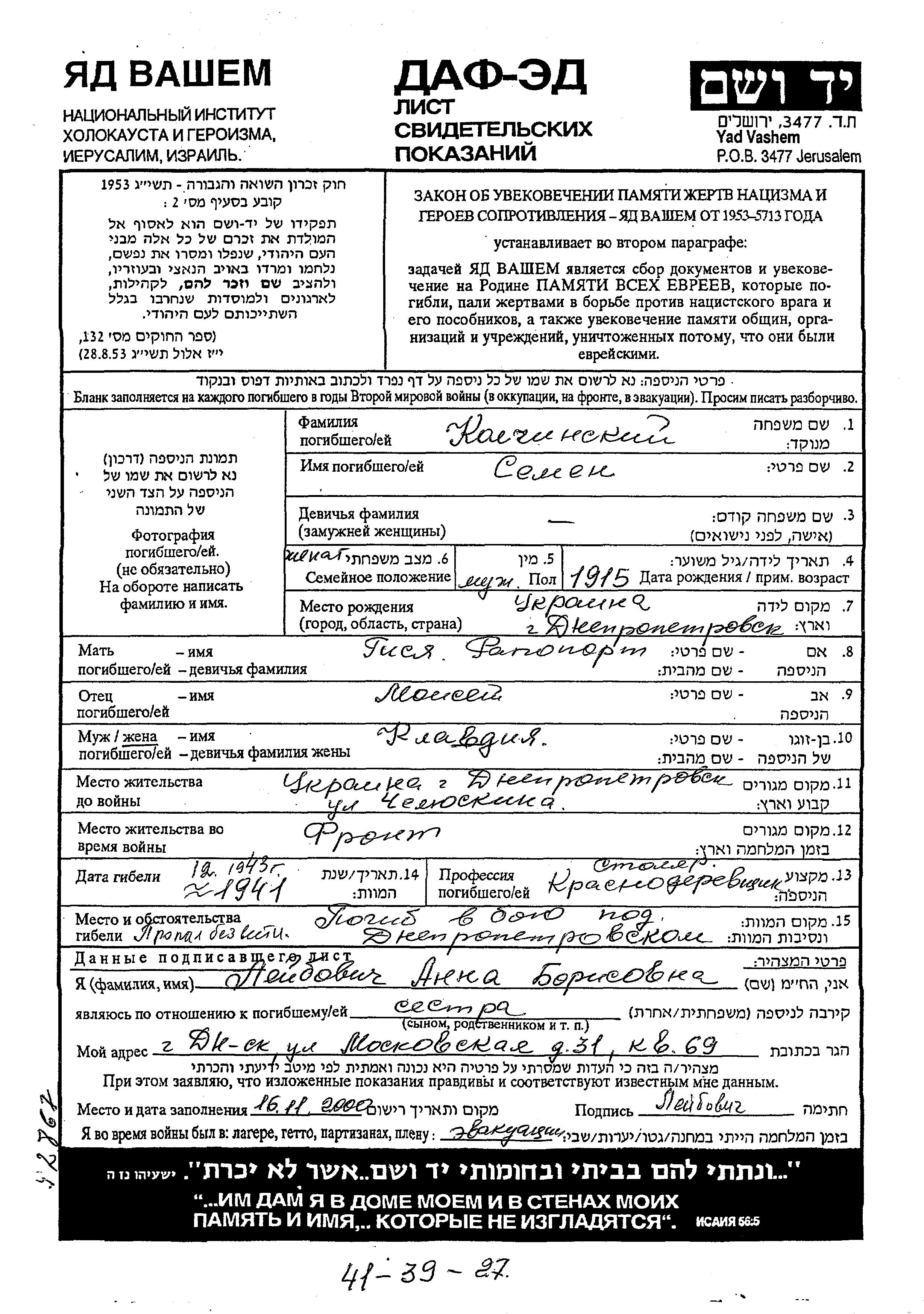 Recherche par date de la mort pendant la période de la Shoah: 1933-1945. Sélectionnez 'Exact'; dans la liste pour rechercher l'année exacte, ou sélectionner '+/- 2 ans'; ou '+/- 5 ans
