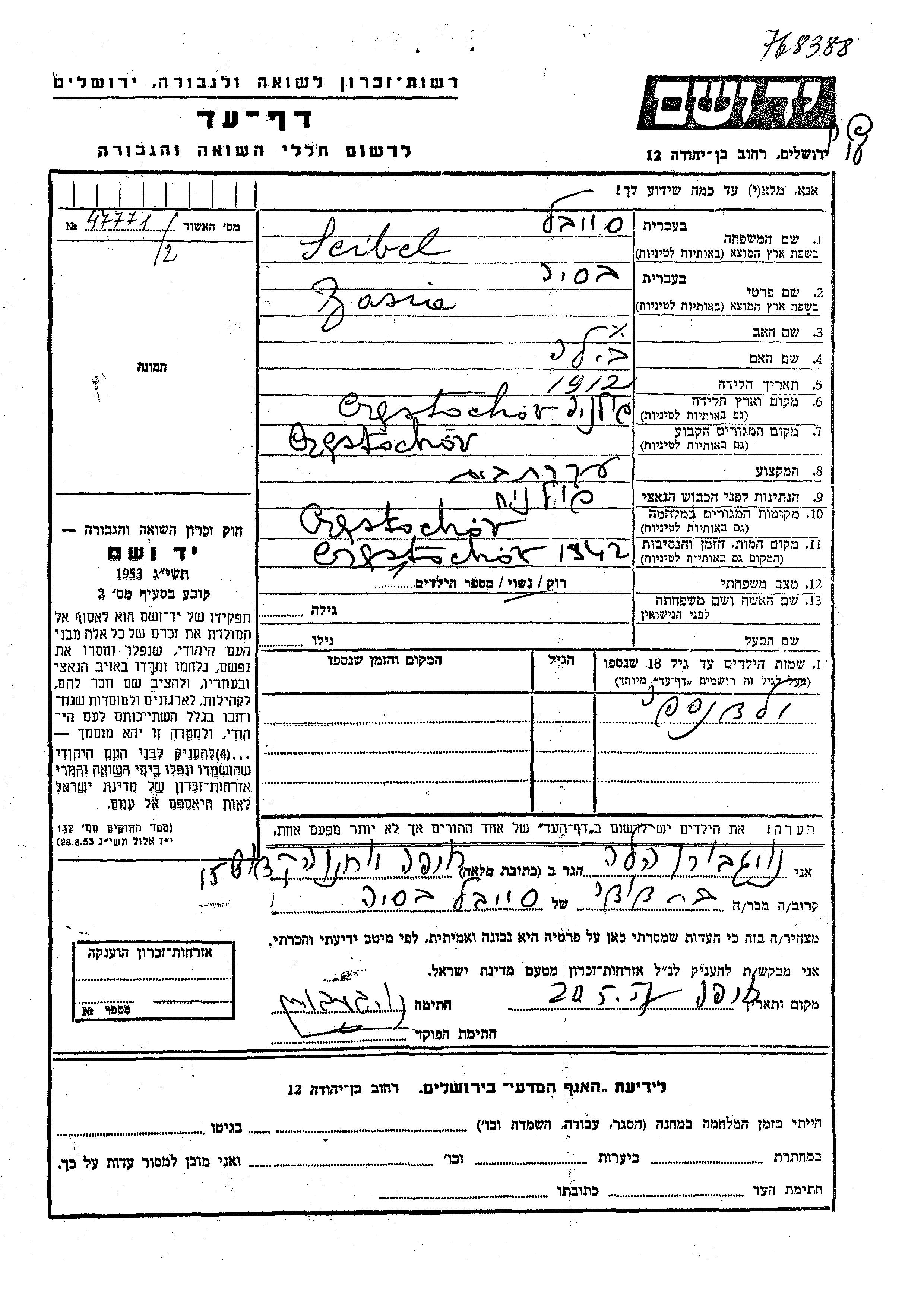 Yad Vashem - Pages of Testimony Names Memorial Collection