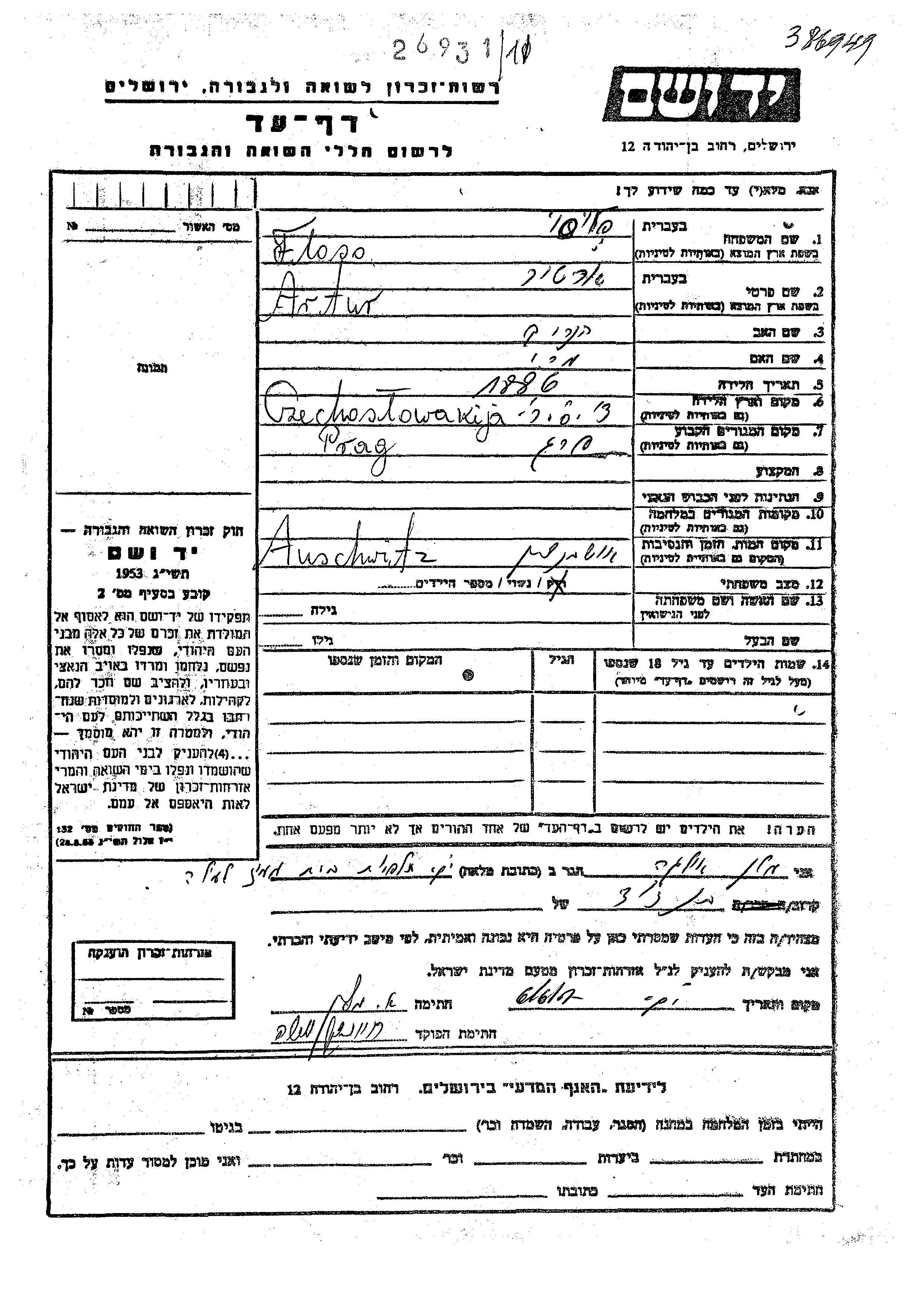 Artur a été assassiné pendant la Shoah. Lieu de la mort: Auschwitz, Pologne.