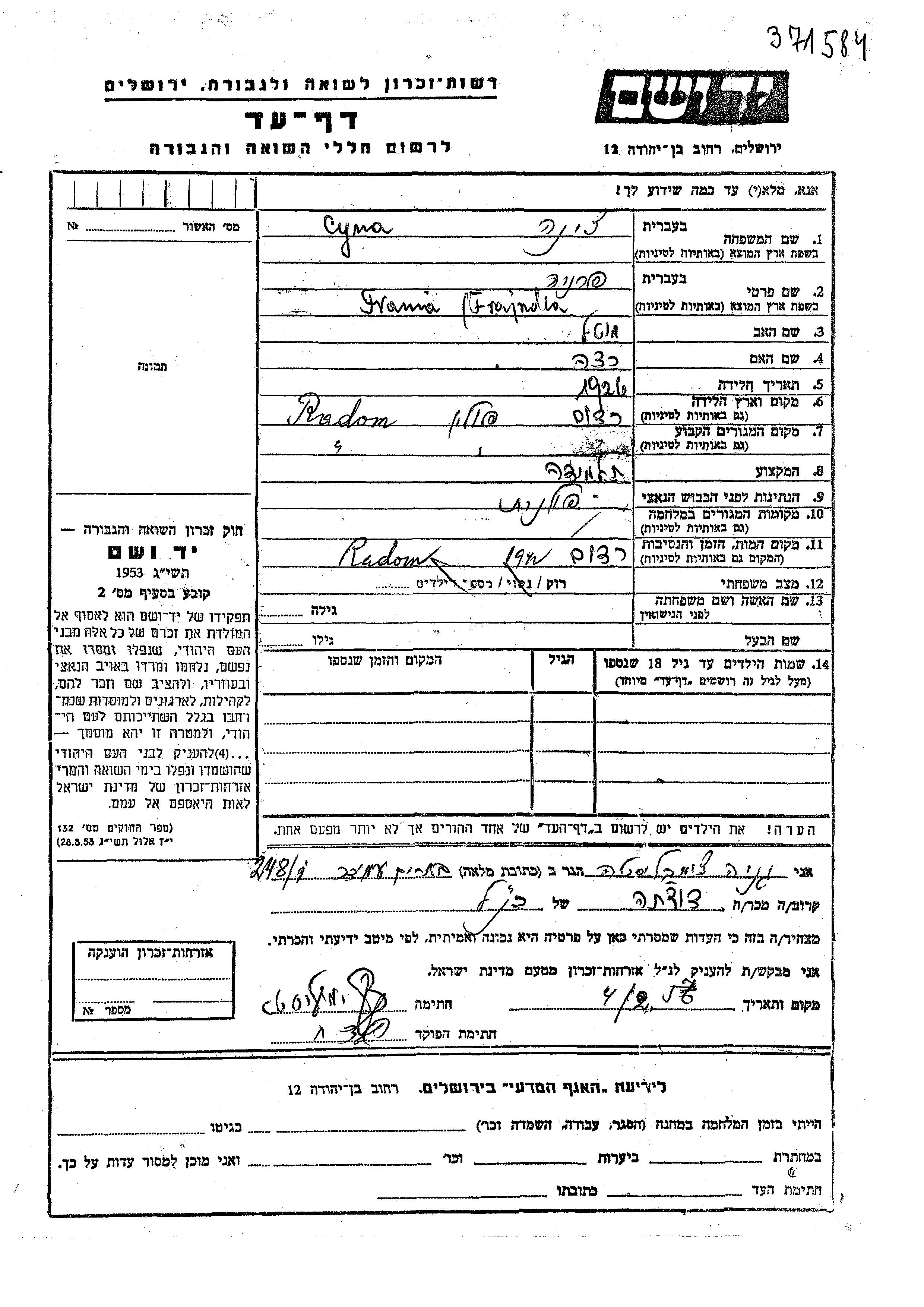 Yad Vashem - Pages of Testimony Names Memorial Collection