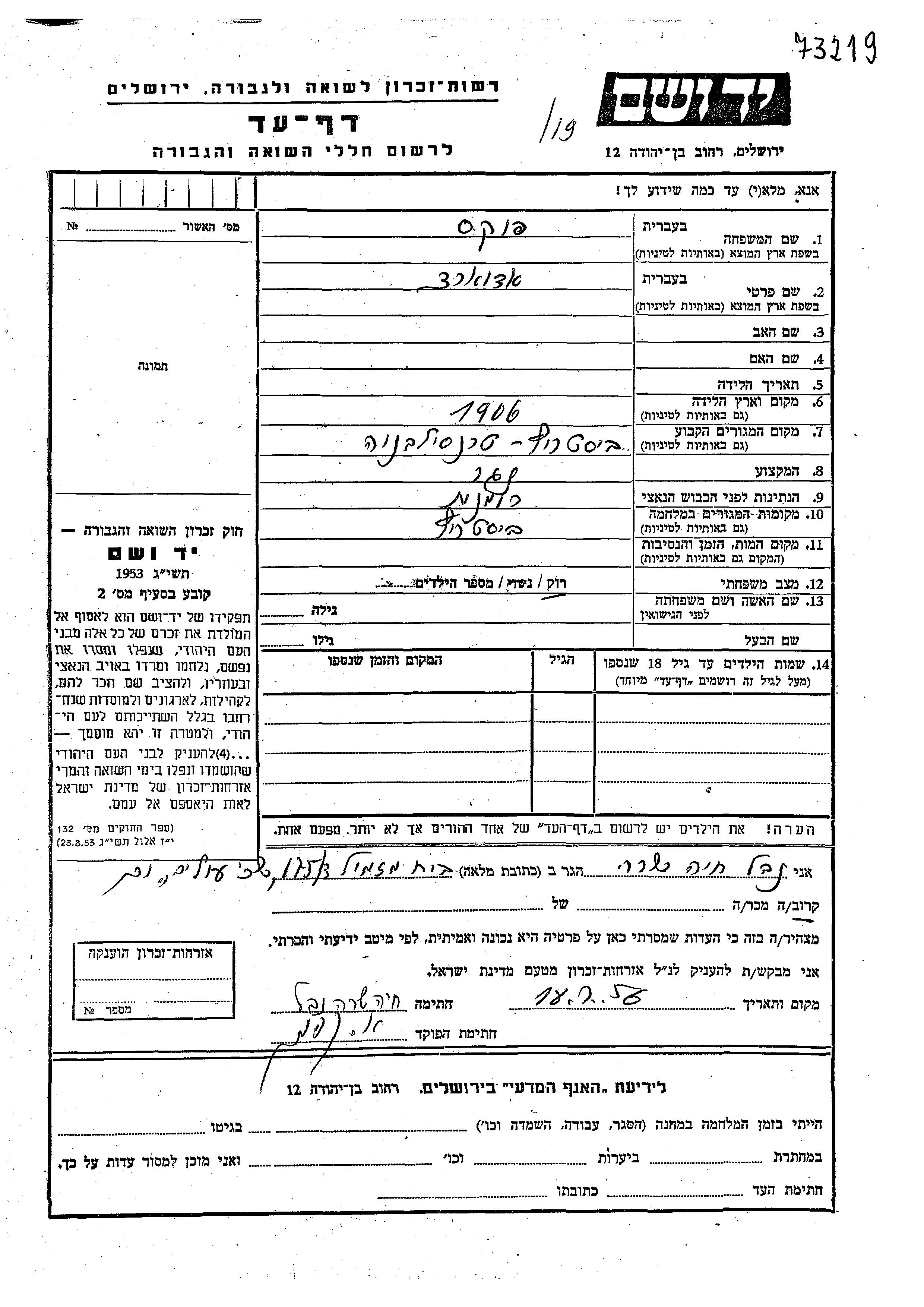 Yad Vashem - Pages of Testimony Names Memorial Collection