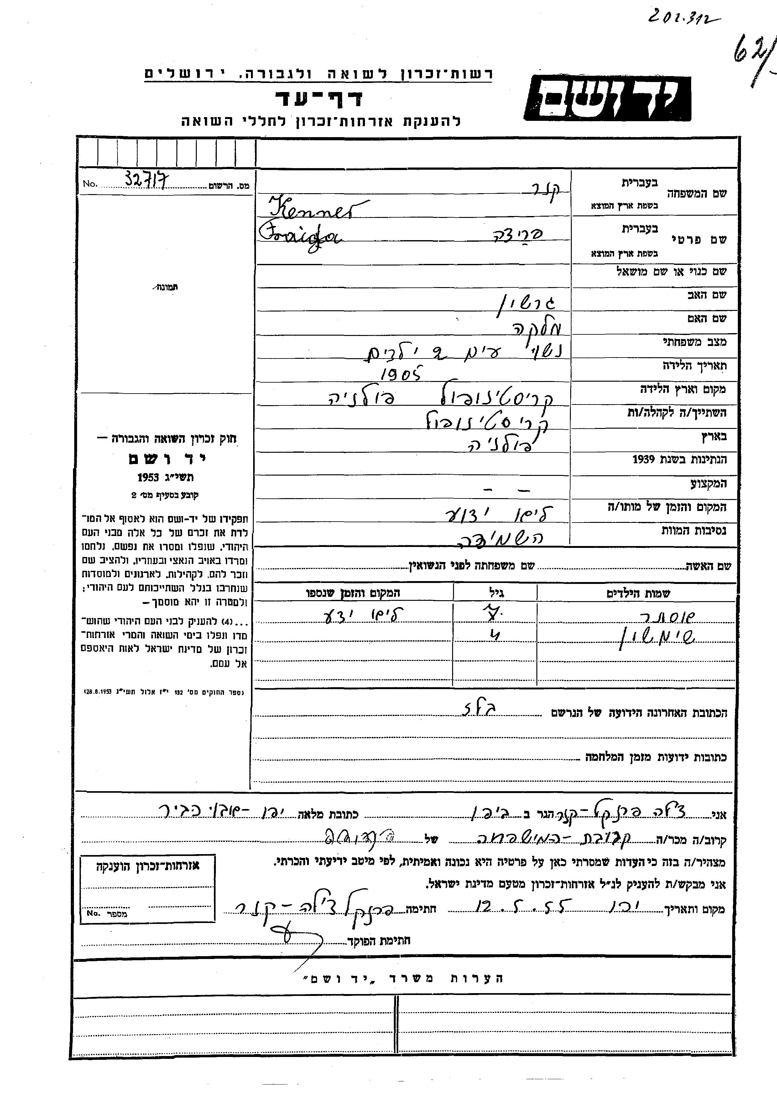 Yad Vashem - Pages of Testimony Names Memorial Collection
