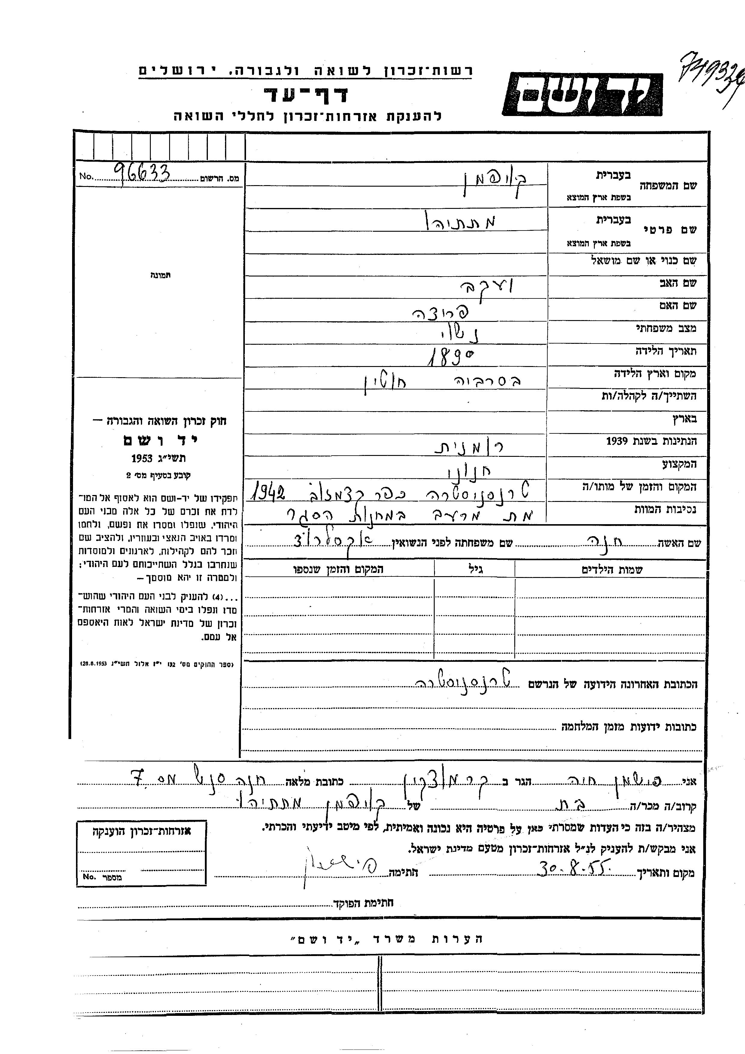 Yad Vashem - Pages of Testimony Names Memorial Collection