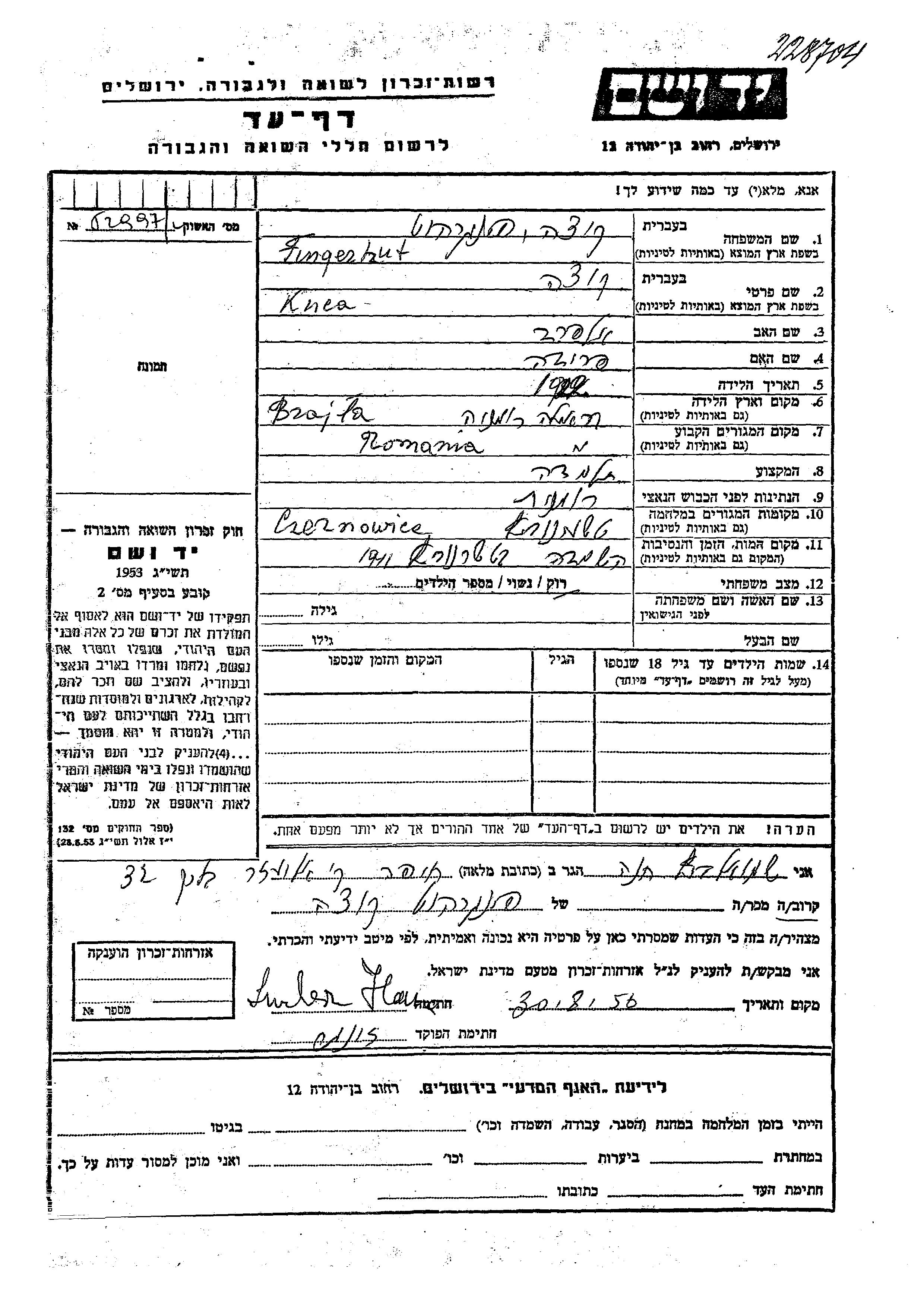 Yad Vashem - Pages of Testimony Names Memorial Collection