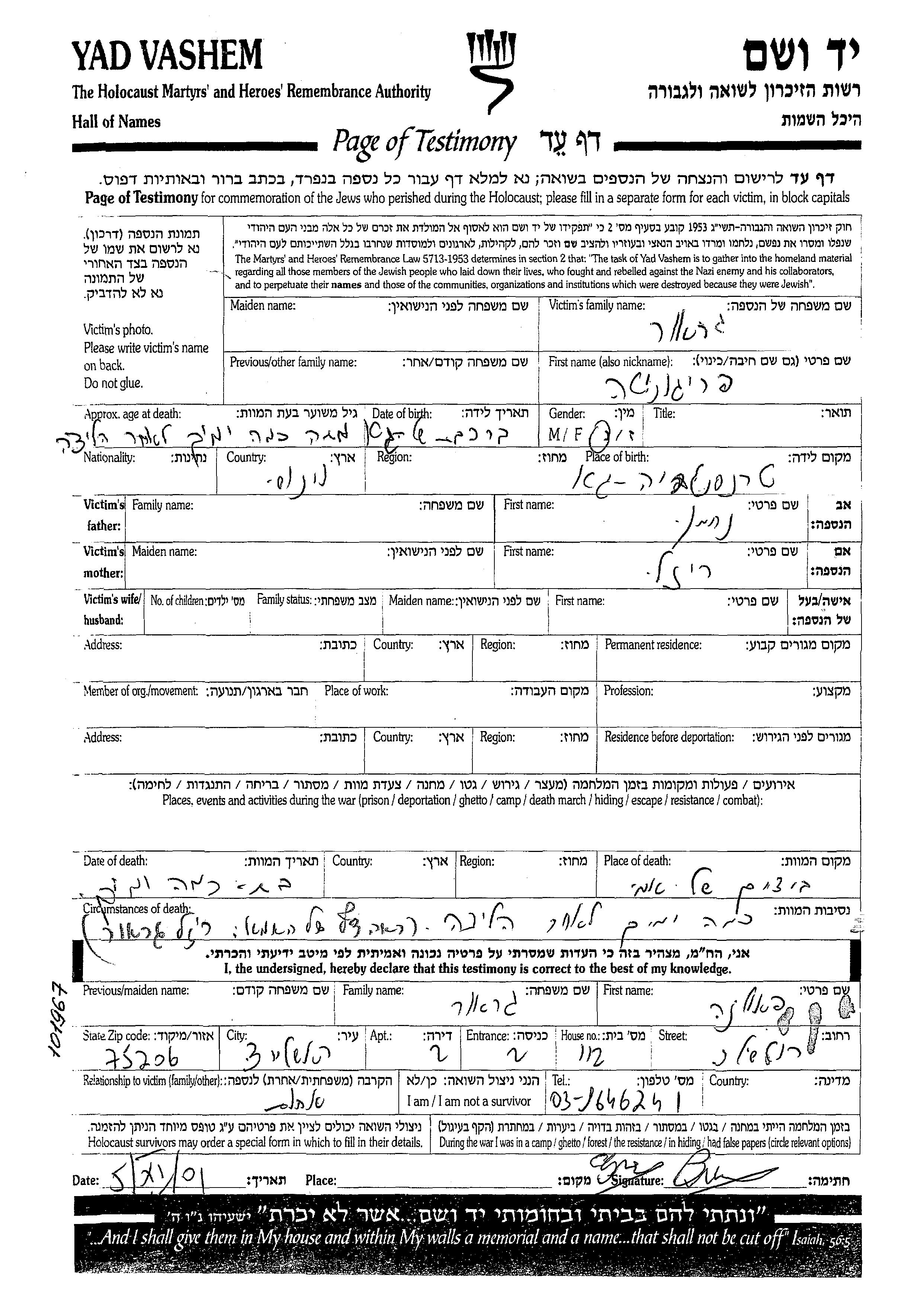 Yad Vashem - Pages of Testimony Names Memorial Collection