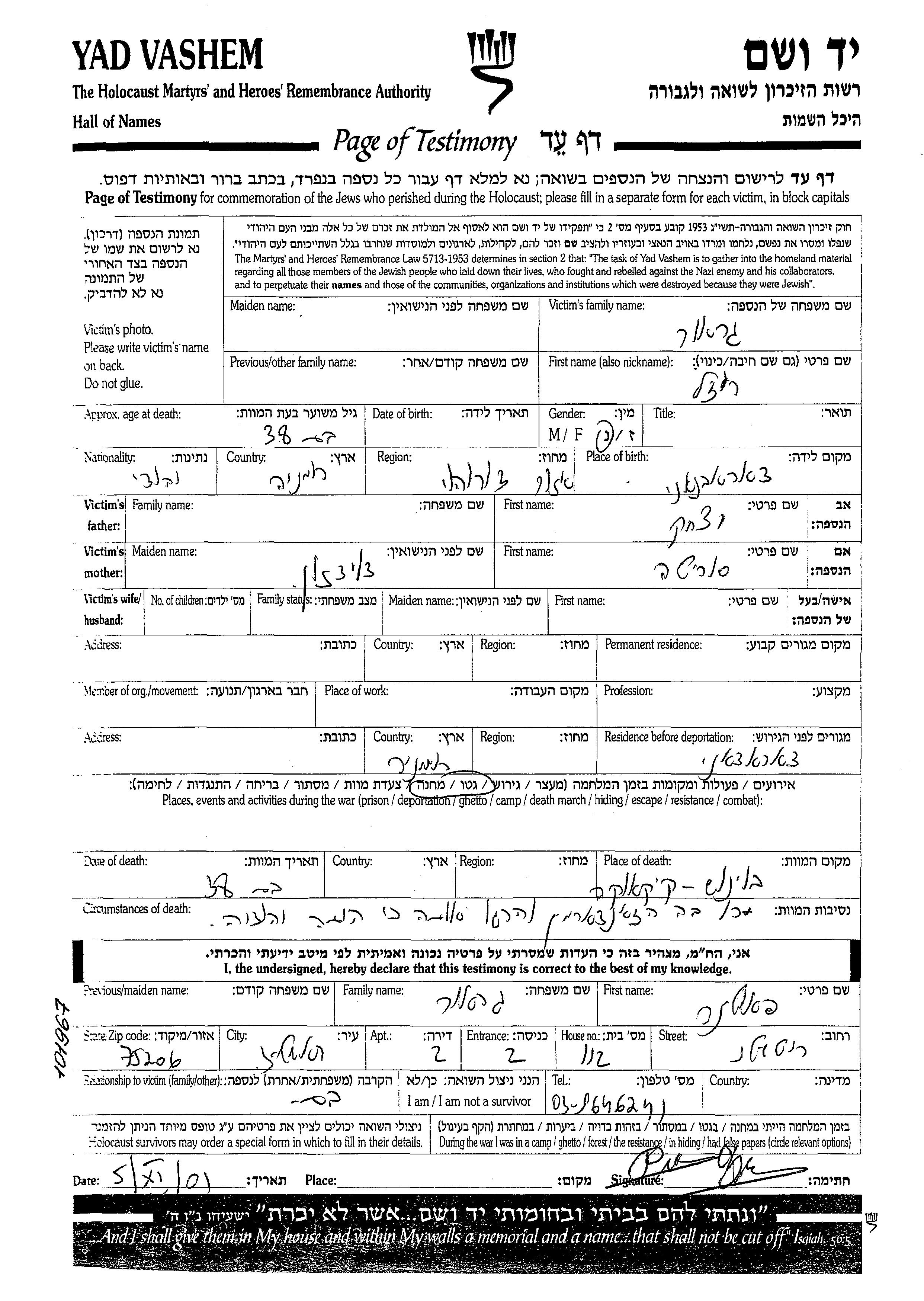 Yad Vashem - Pages of Testimony Names Memorial Collection