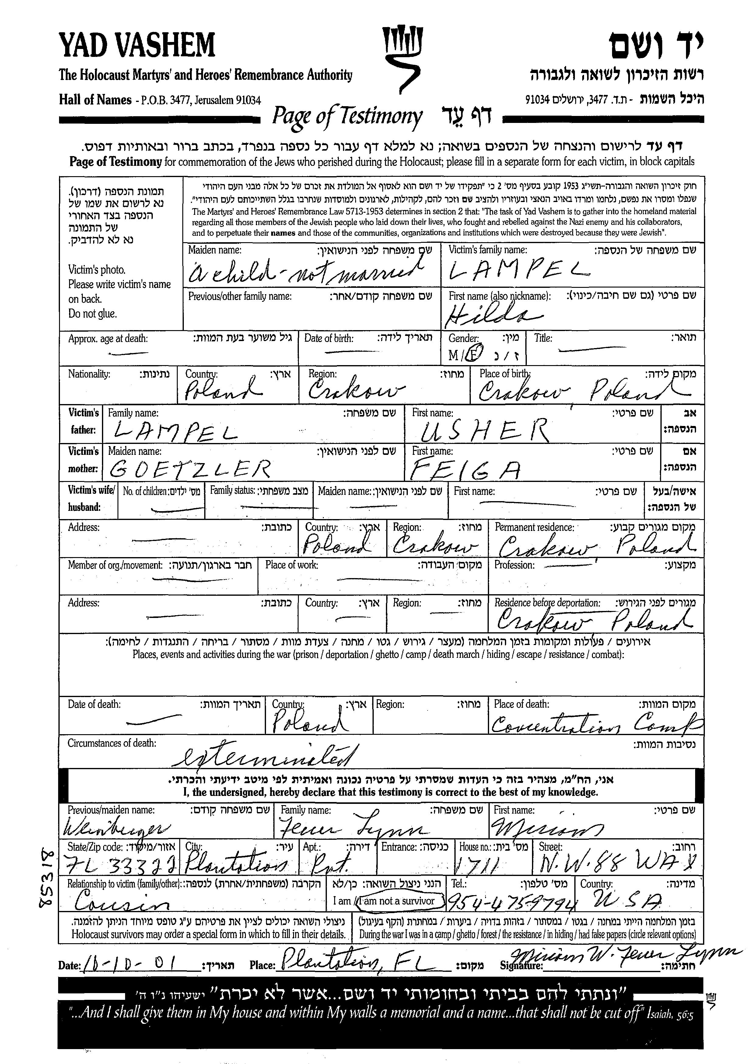 Yad Vashem - Pages of Testimony Names Memorial Collection