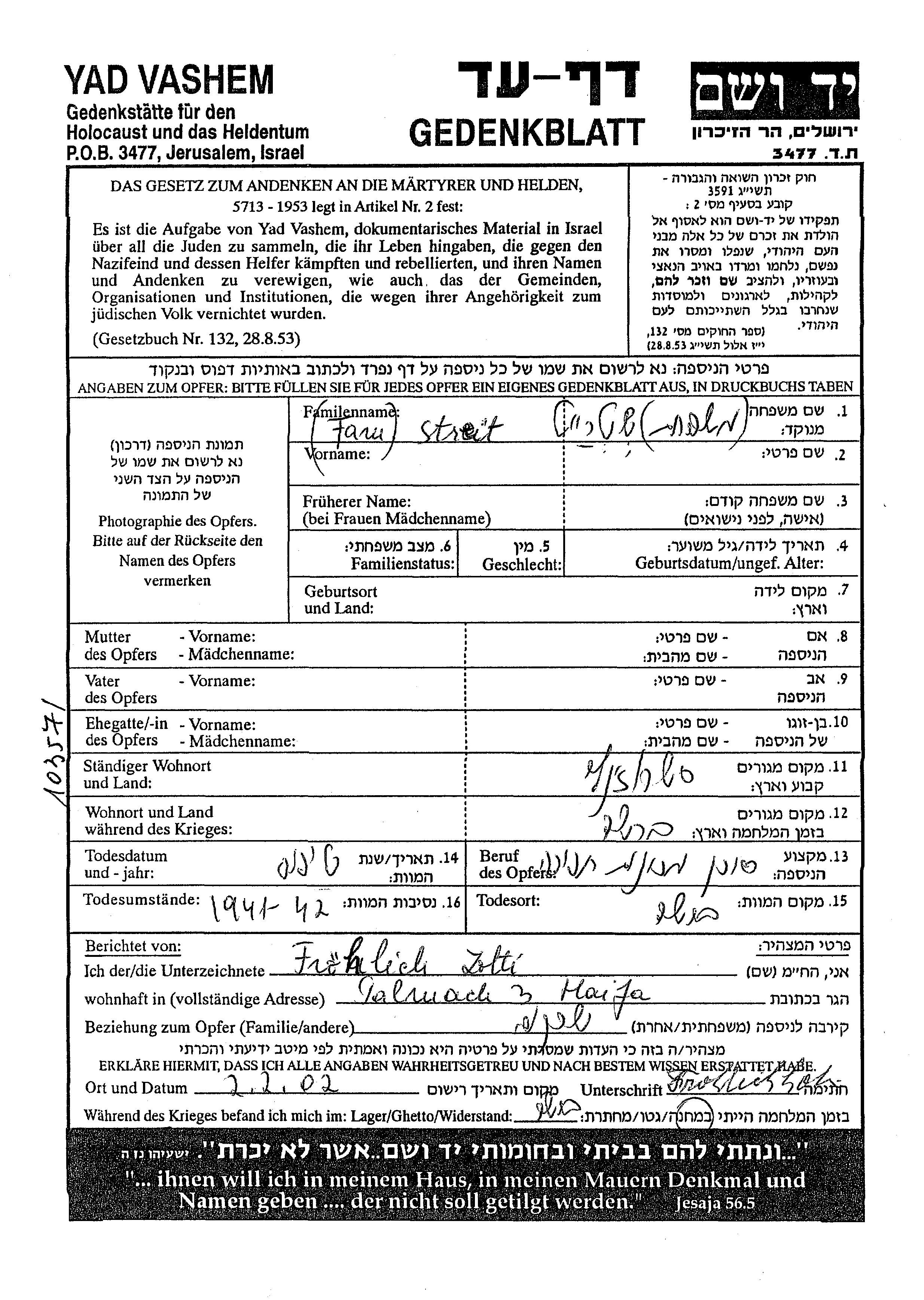 Yad Vashem - Pages of Testimony Names Memorial Collection