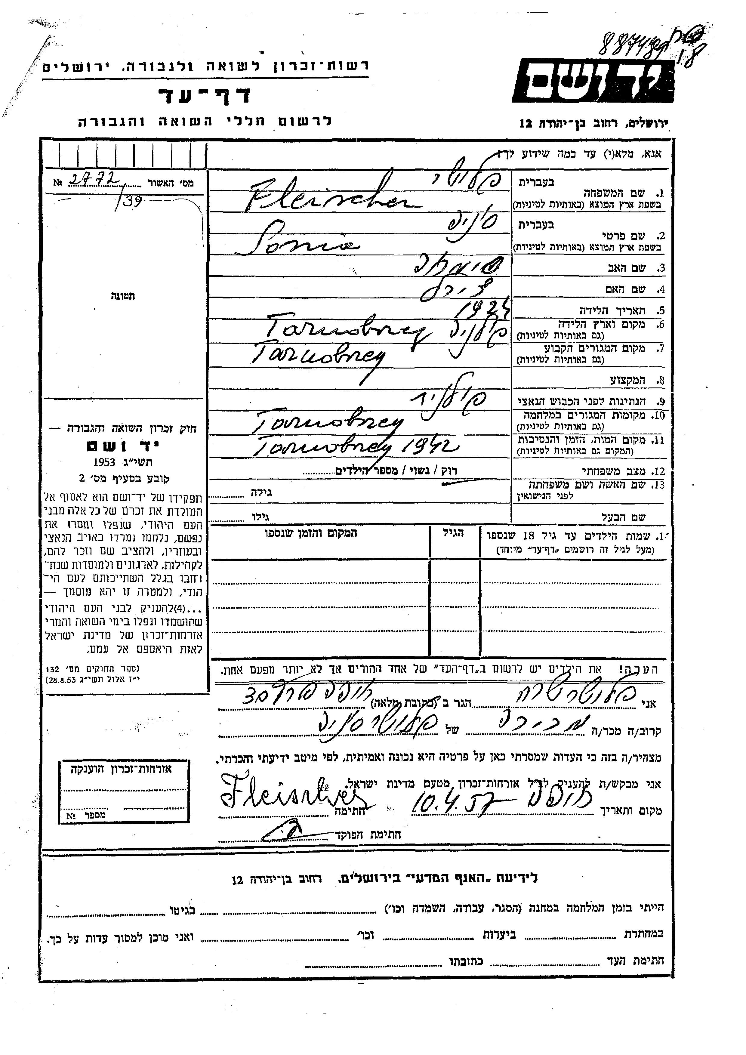 Yad Vashem - Pages of Testimony Names Memorial Collection