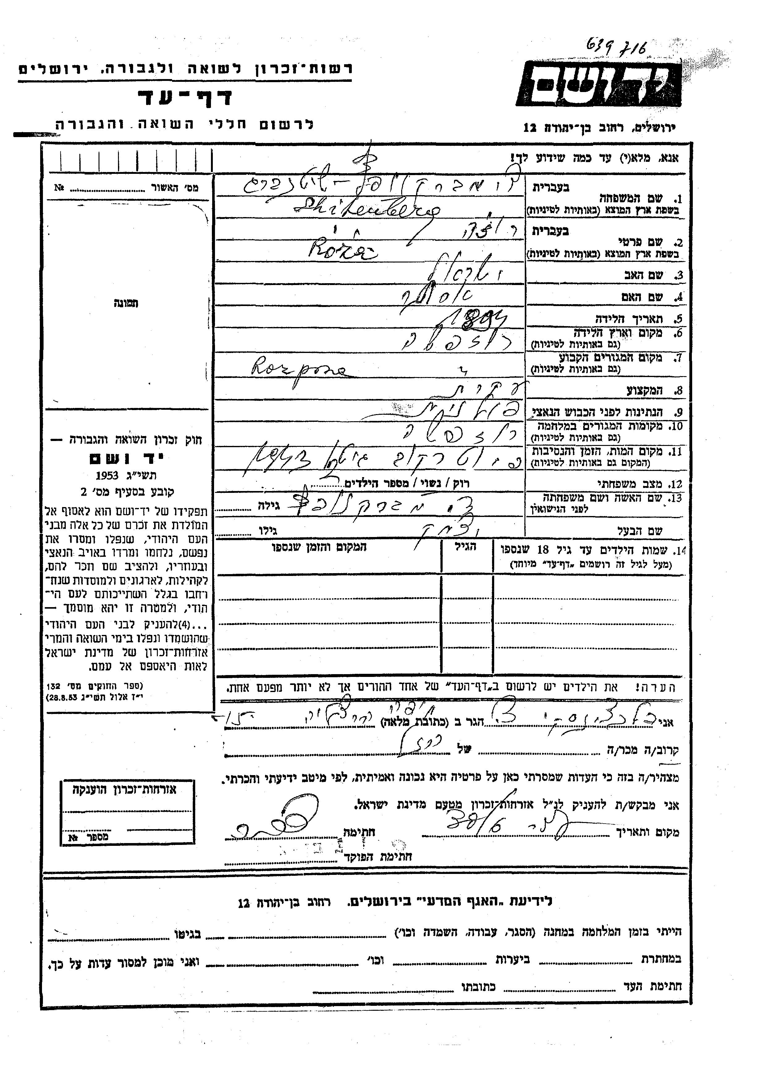 Roza a été assassinée pendant la Shoah. Lieu de la mort: Piotrkow, Pologne en 1943.