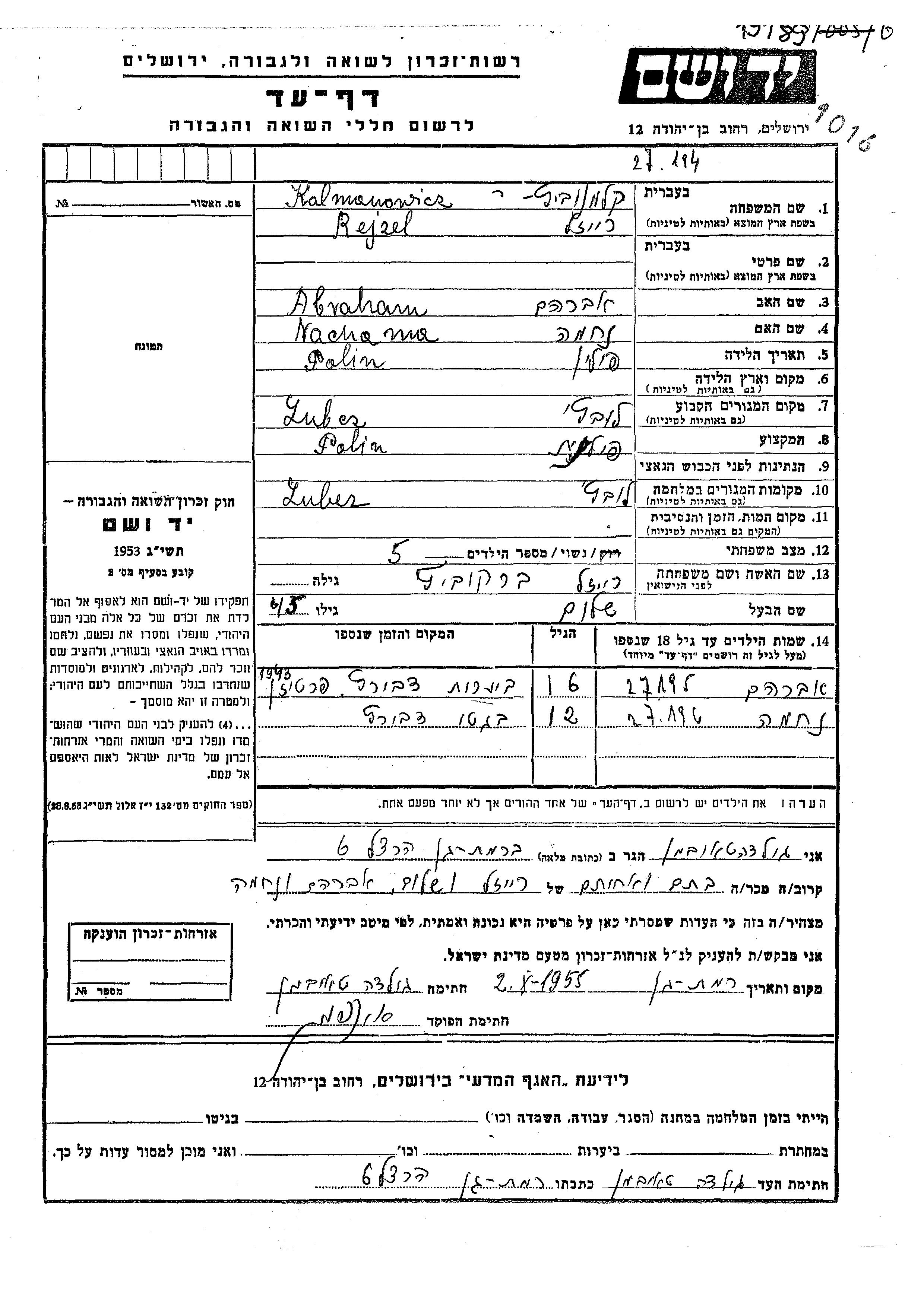 Yad Vashem - Pages of Testimony Names Memorial Collection