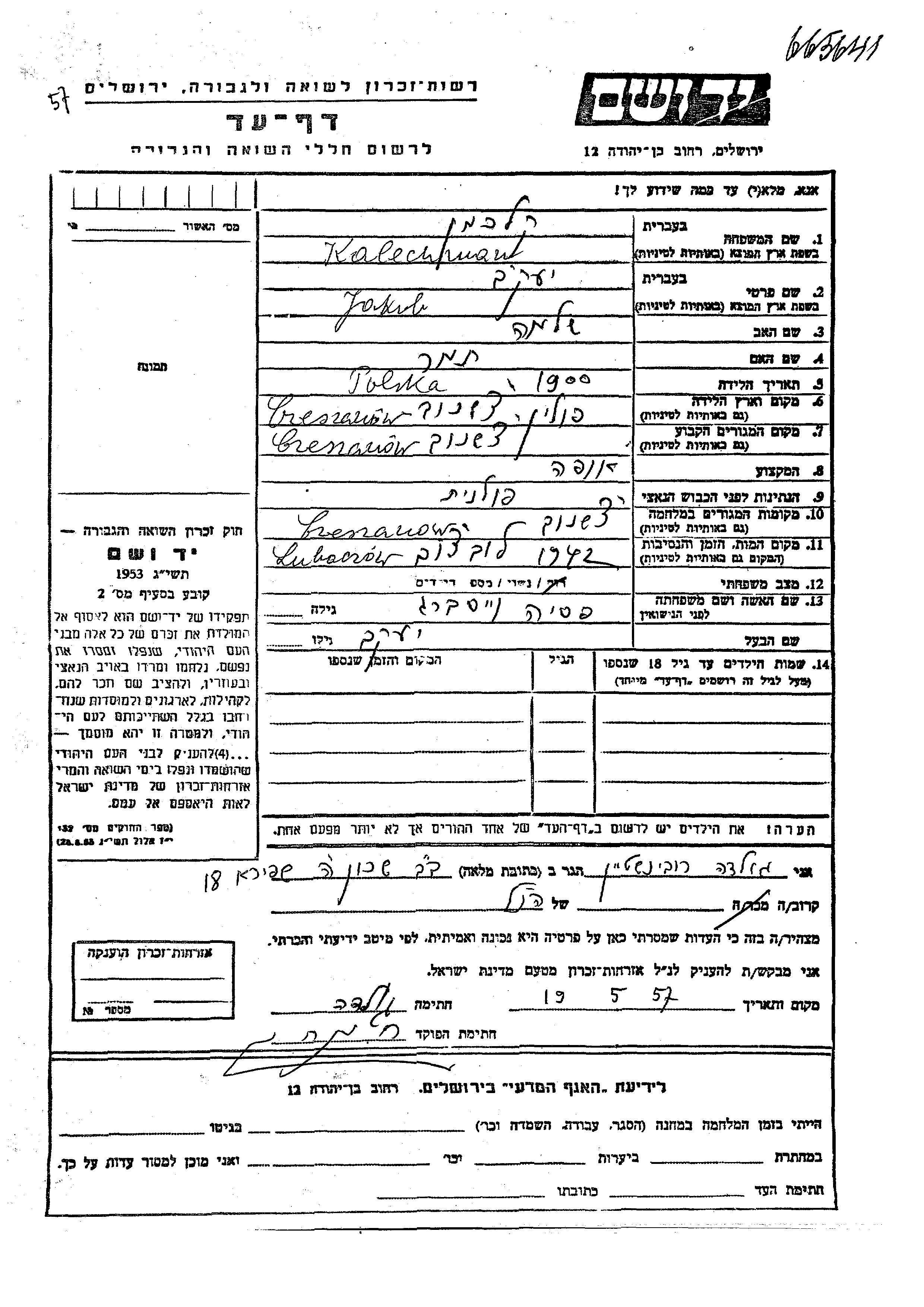 Yad Vashem - Pages of Testimony Names Memorial Collection