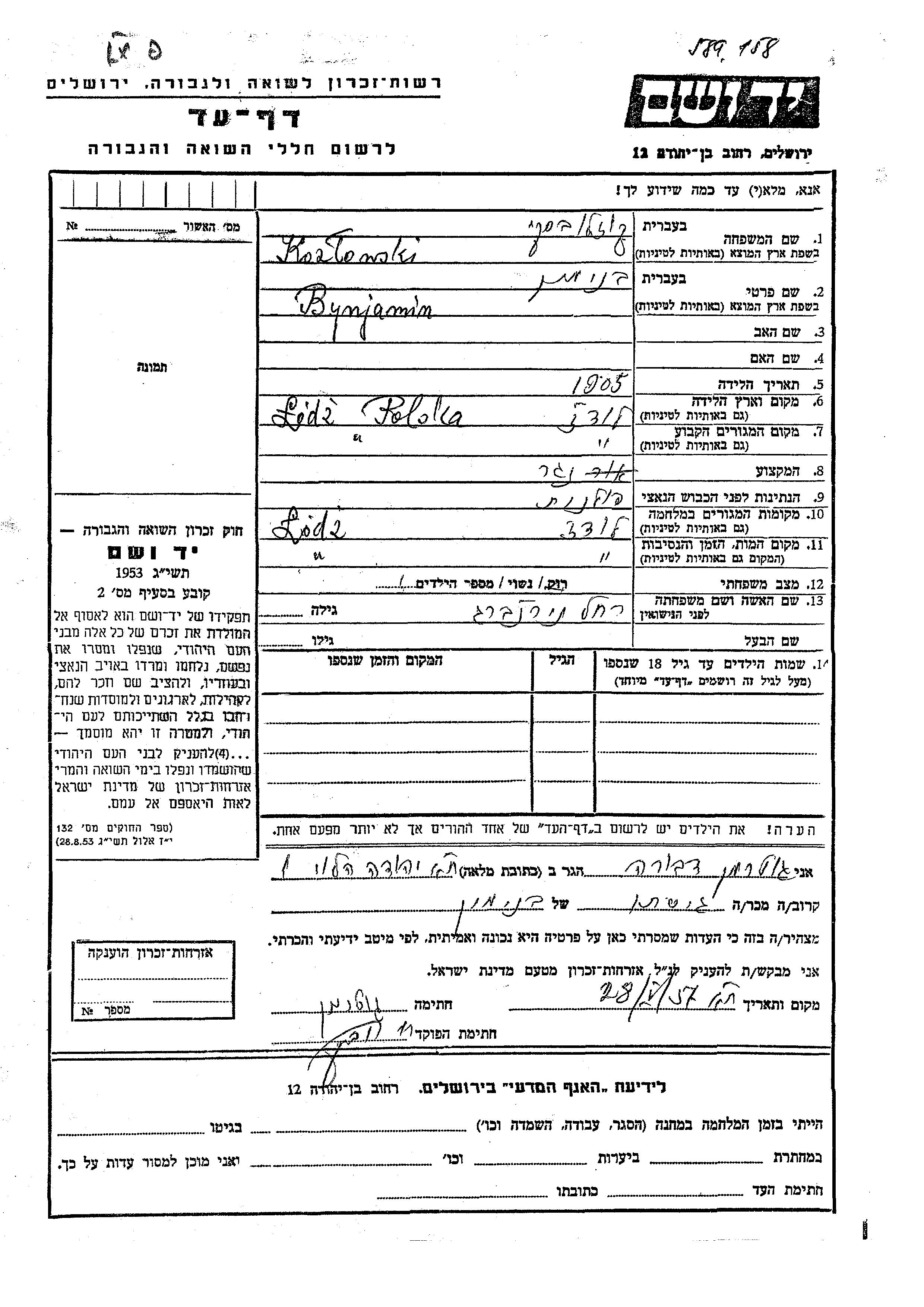 Bynjamin a été assassiné pendant la Shoah. Lieu de la mort: Lodz, Pologne.