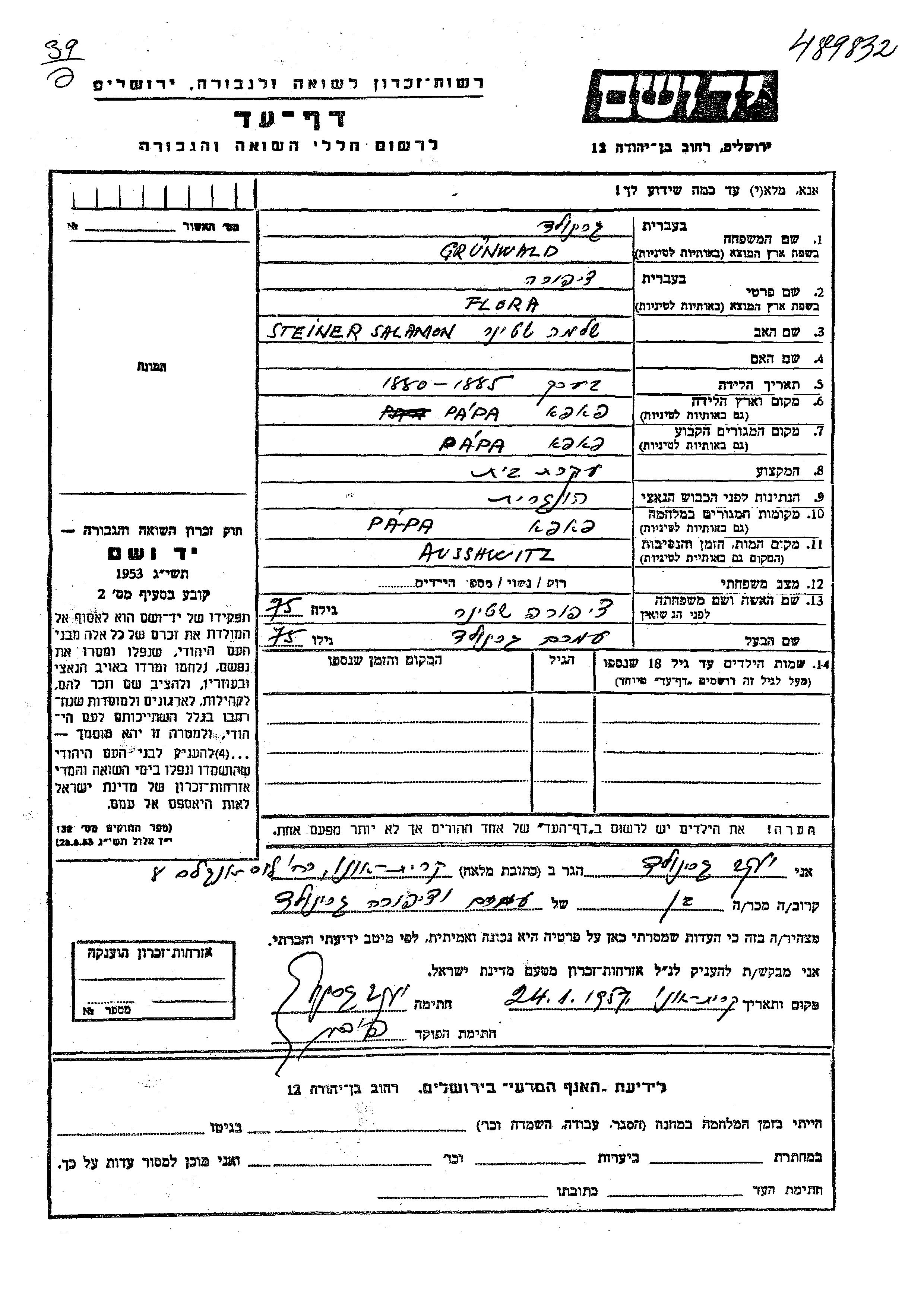 Yad Vashem - Pages of Testimony Names Memorial Collection