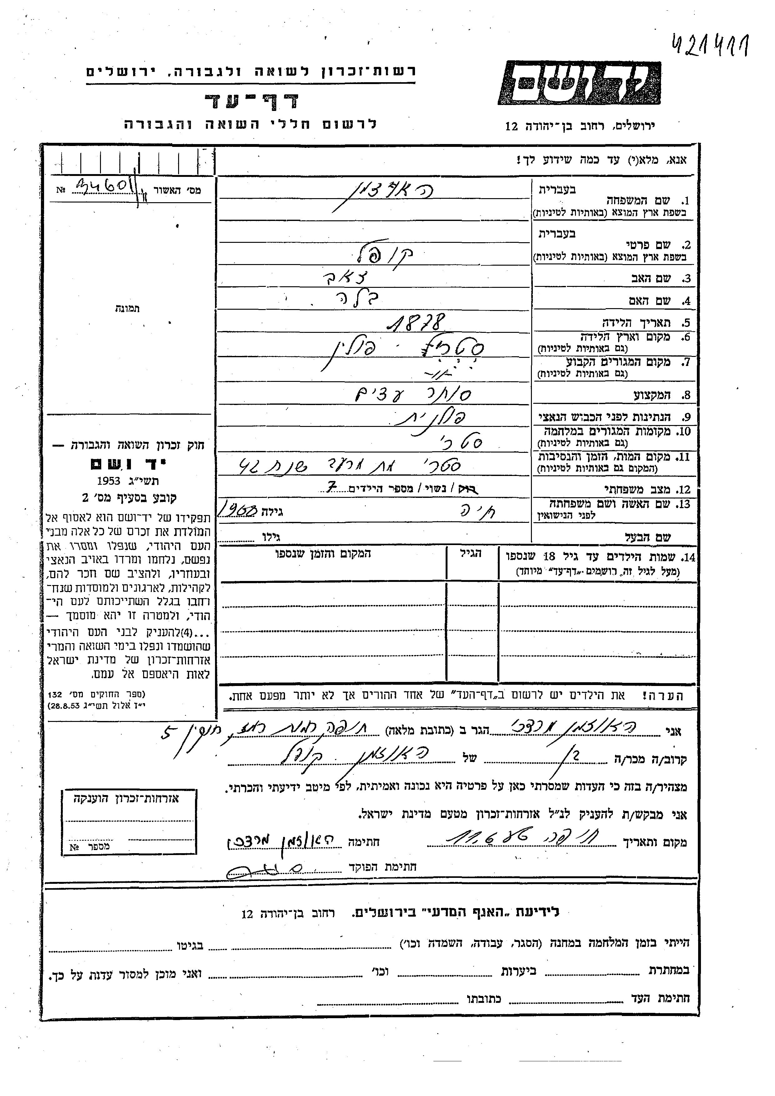 Yad Vashem - Pages of Testimony Names Memorial Collection