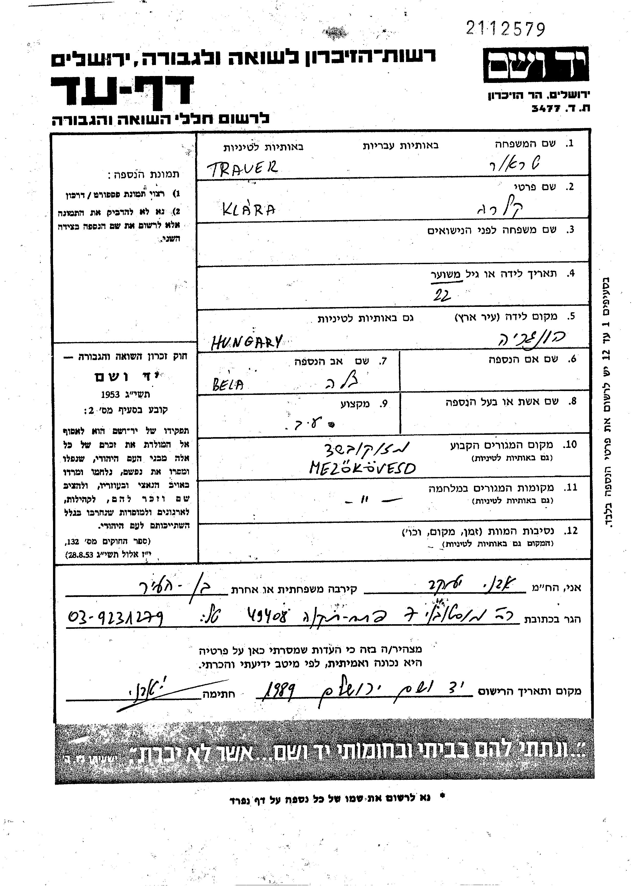 Yad Vashem - Pages of Testimony Names Memorial Collection
