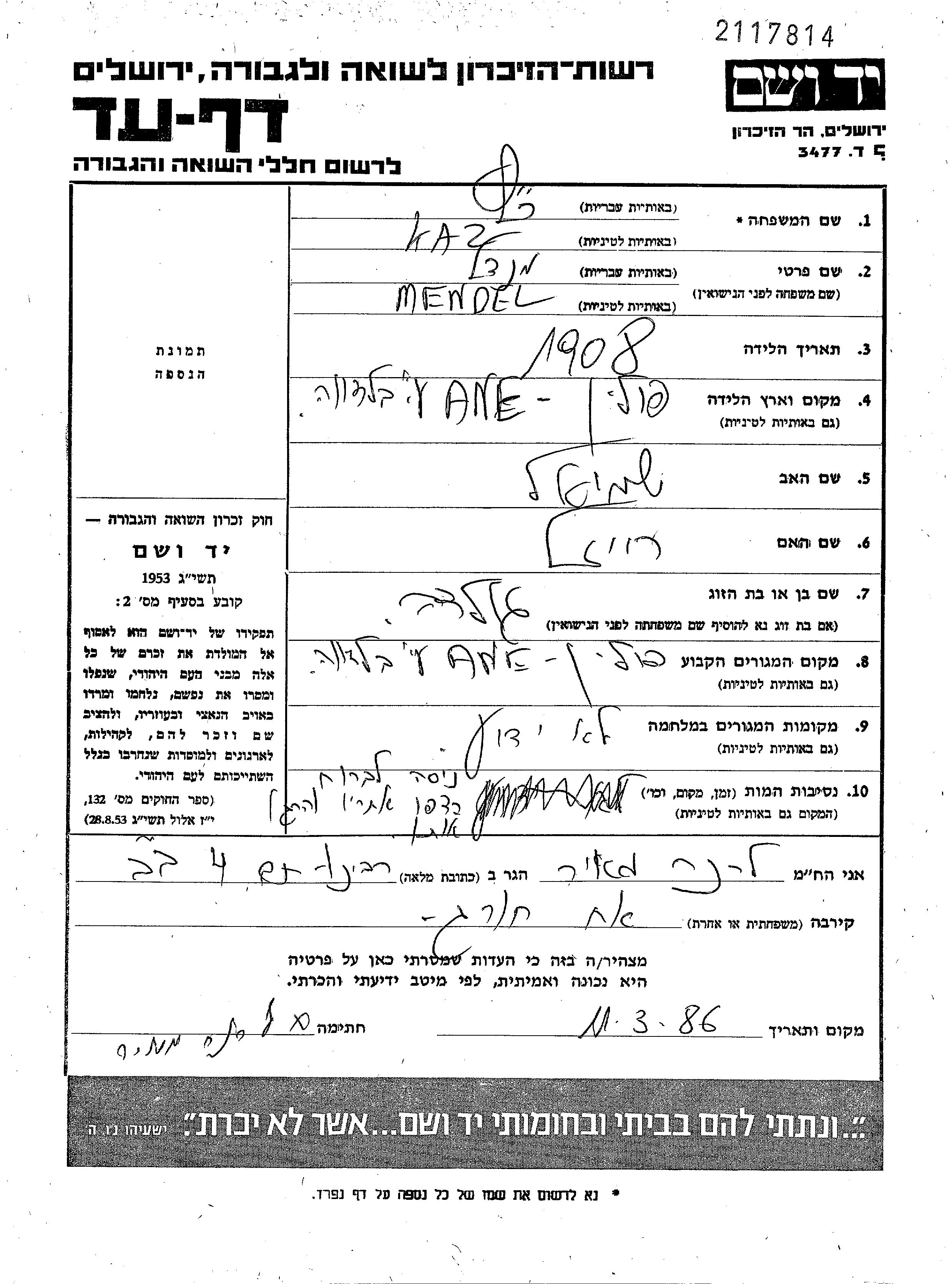 Recherche par nom du dépositeur de la Feuille de témoignage. Cette recherché indique aussi les noms de jeunes filles.