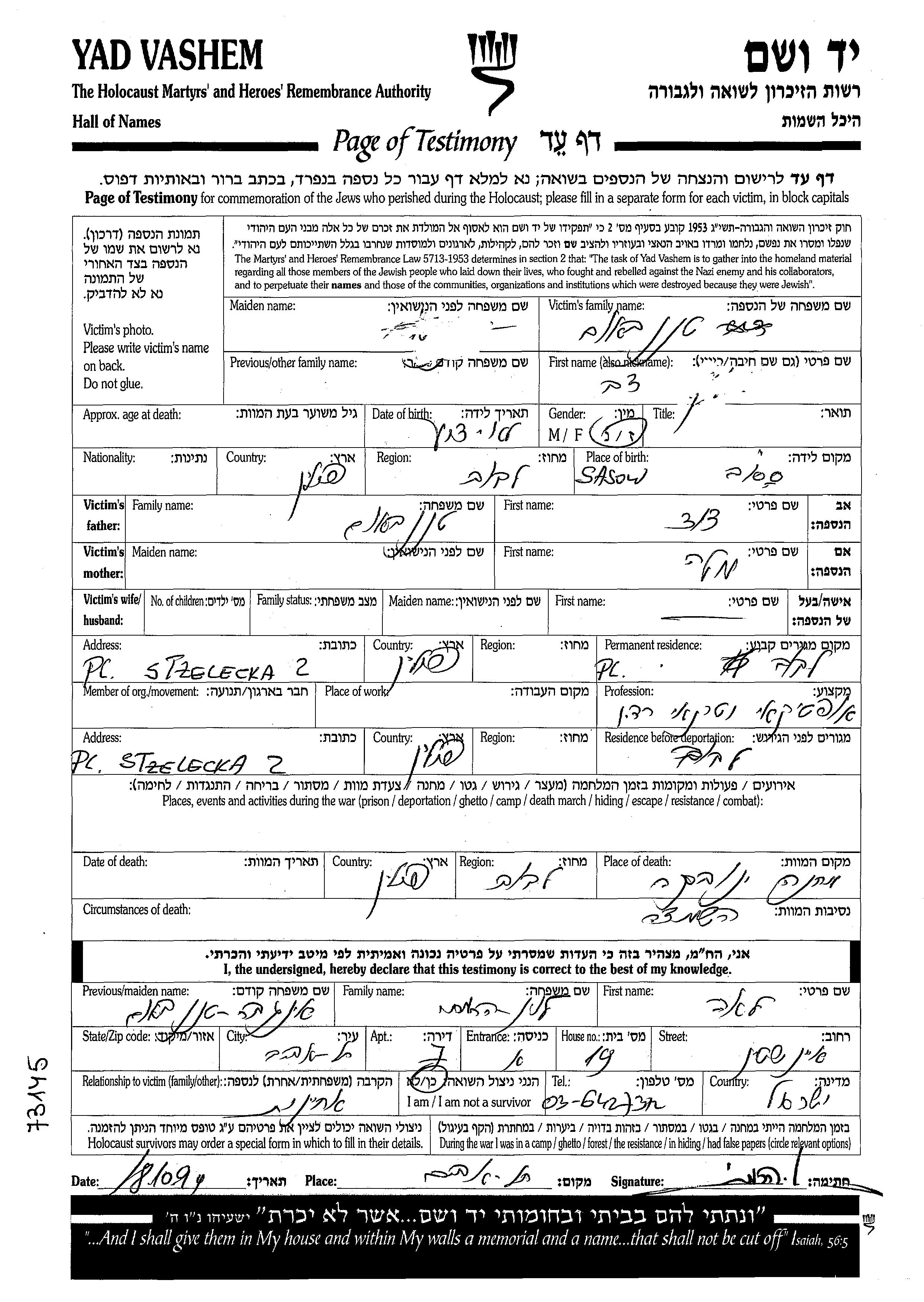 Yad Vashem - Pages of Testimony Names Memorial Collection