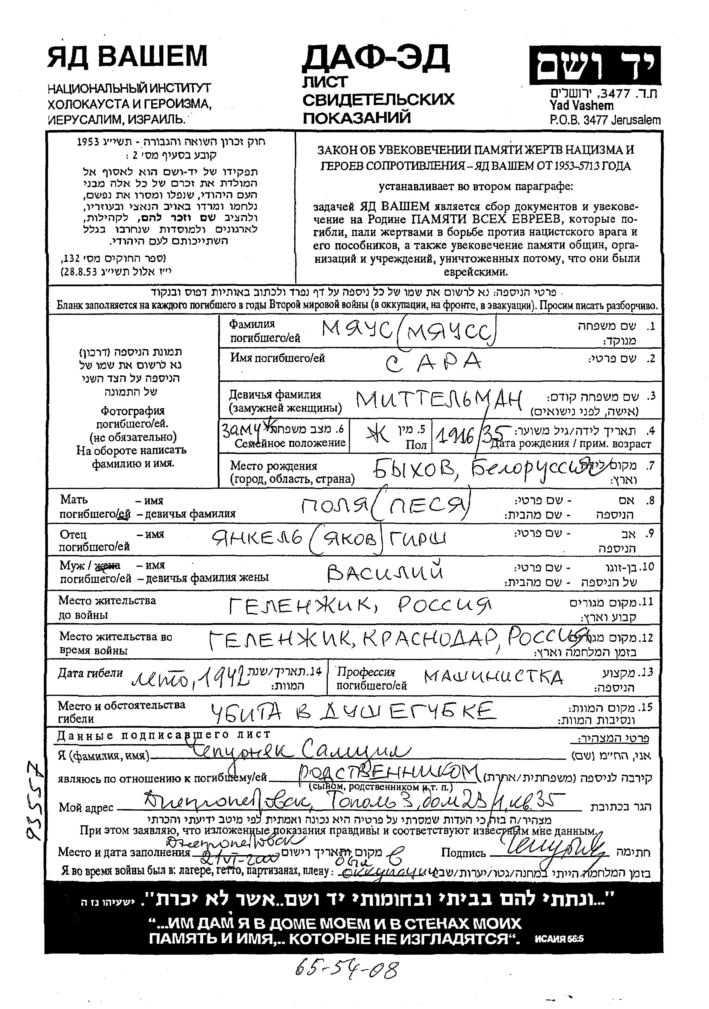 Yad Vashem - Pages of Testimony Names Memorial Collection