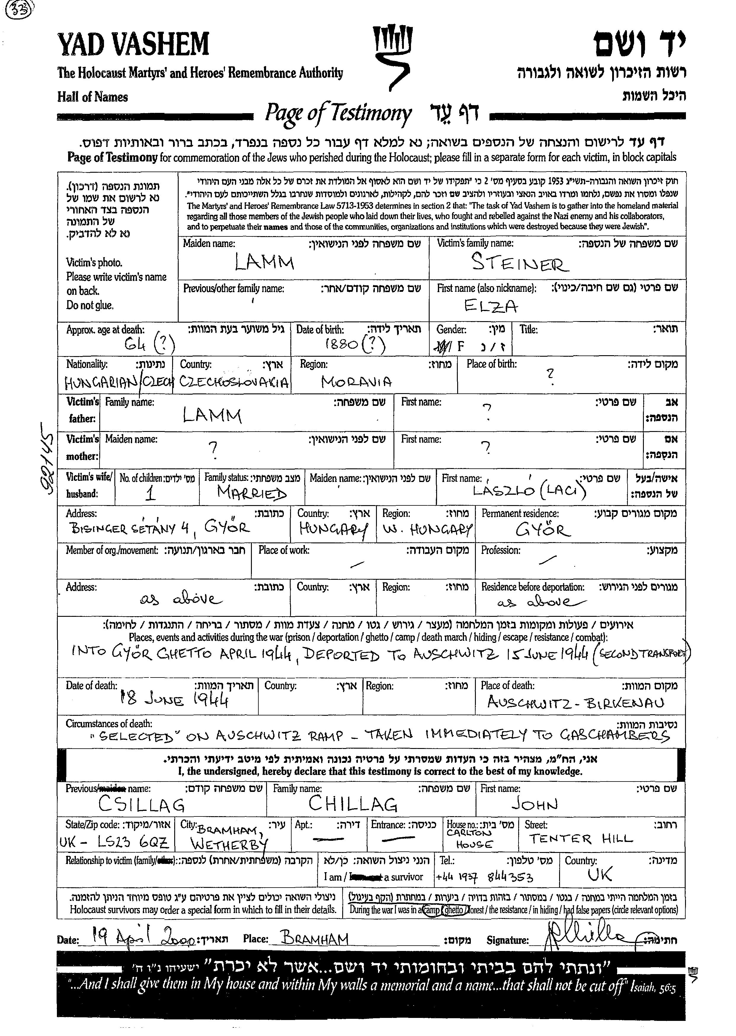 Yad Vashem - Pages of Testimony Names Memorial Collection