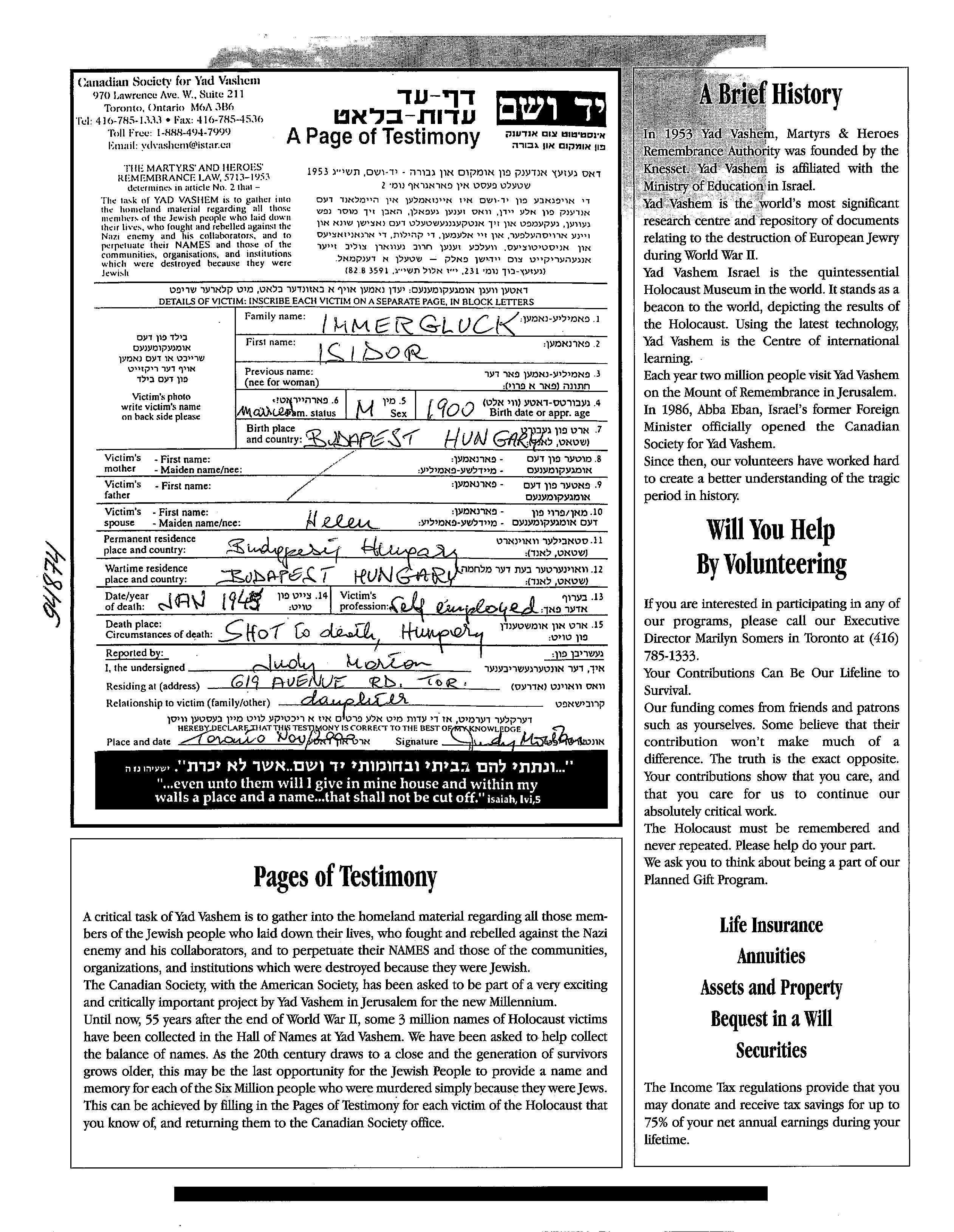 Yad Vashem - Pages of Testimony Names Memorial Collection