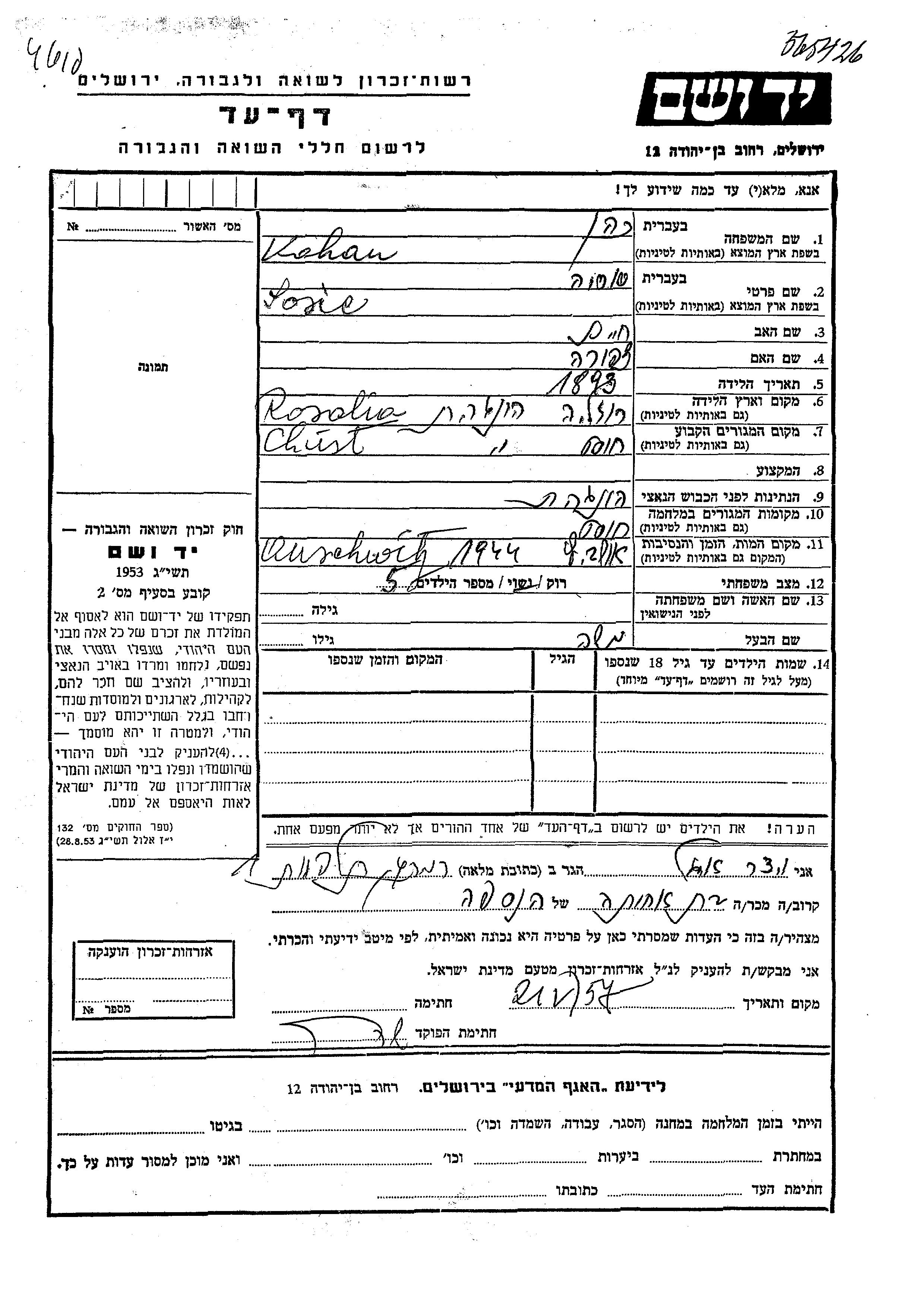 Yad Vashem - Pages of Testimony Names Memorial Collection