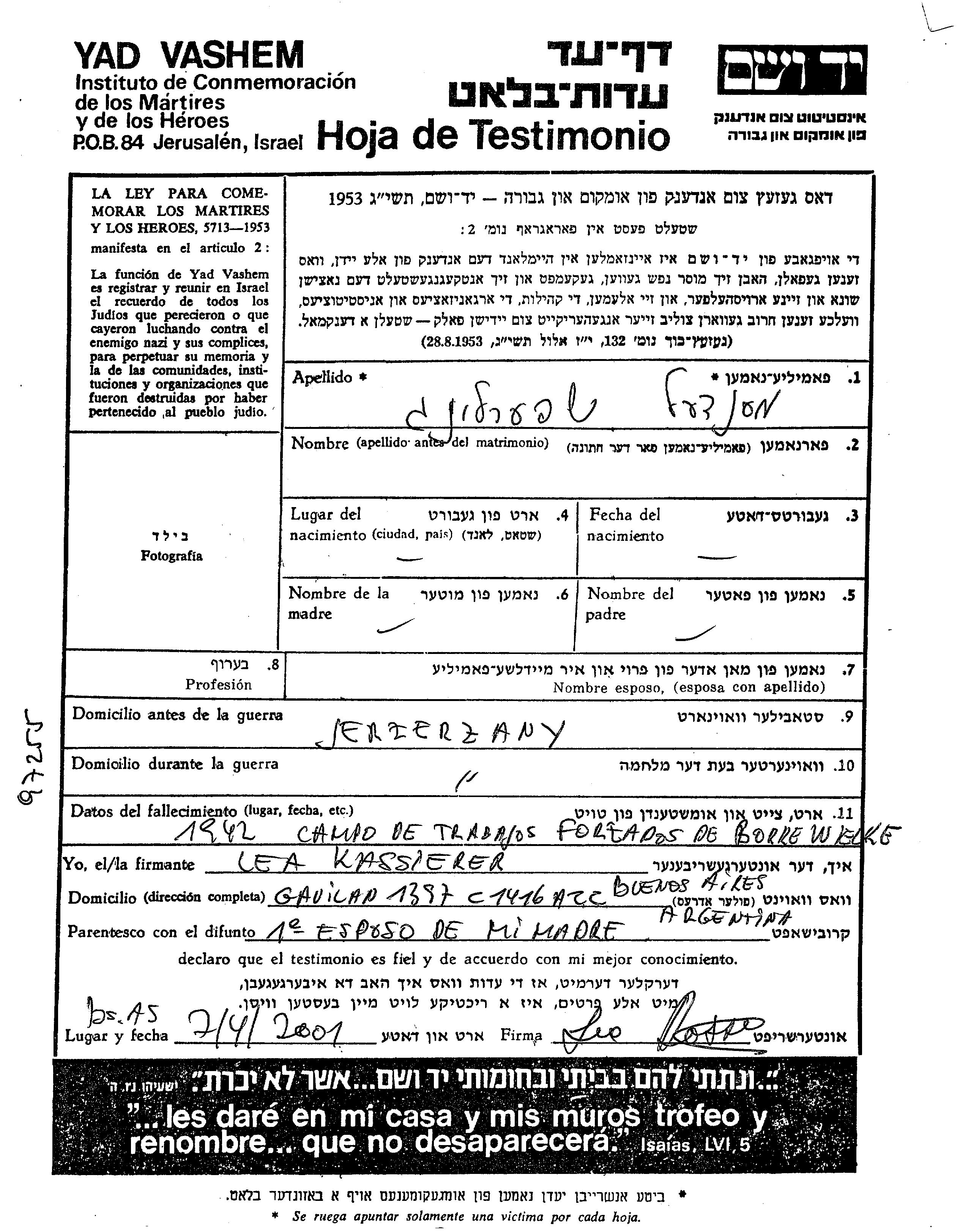 Recherche par lieu de résidence permanente avant la Shoah, ville, village, département, région ou pays.