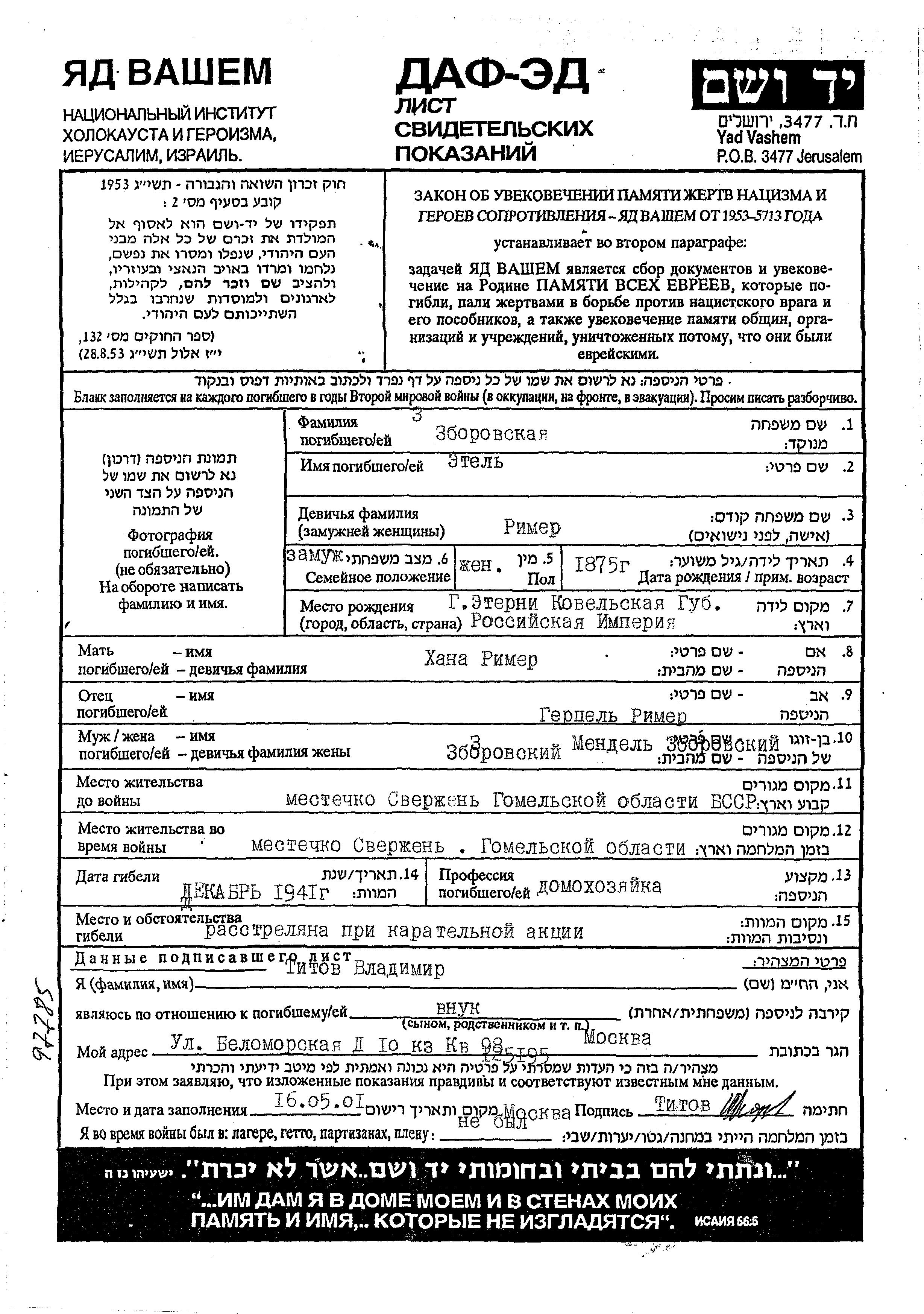 Yad Vashem - Pages of Testimony Names Memorial Collection