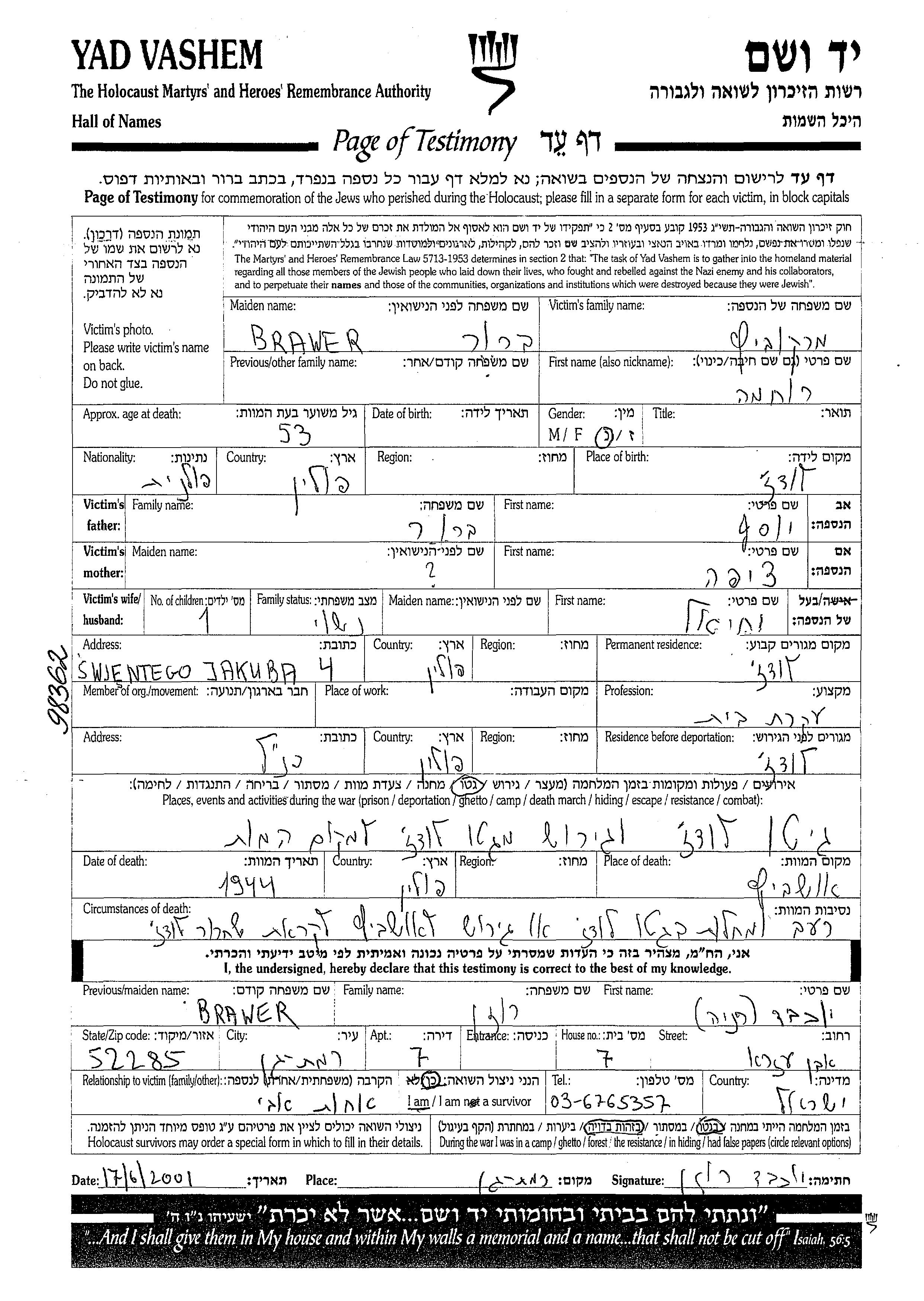 Yad Vashem - Pages of Testimony Names Memorial Collection