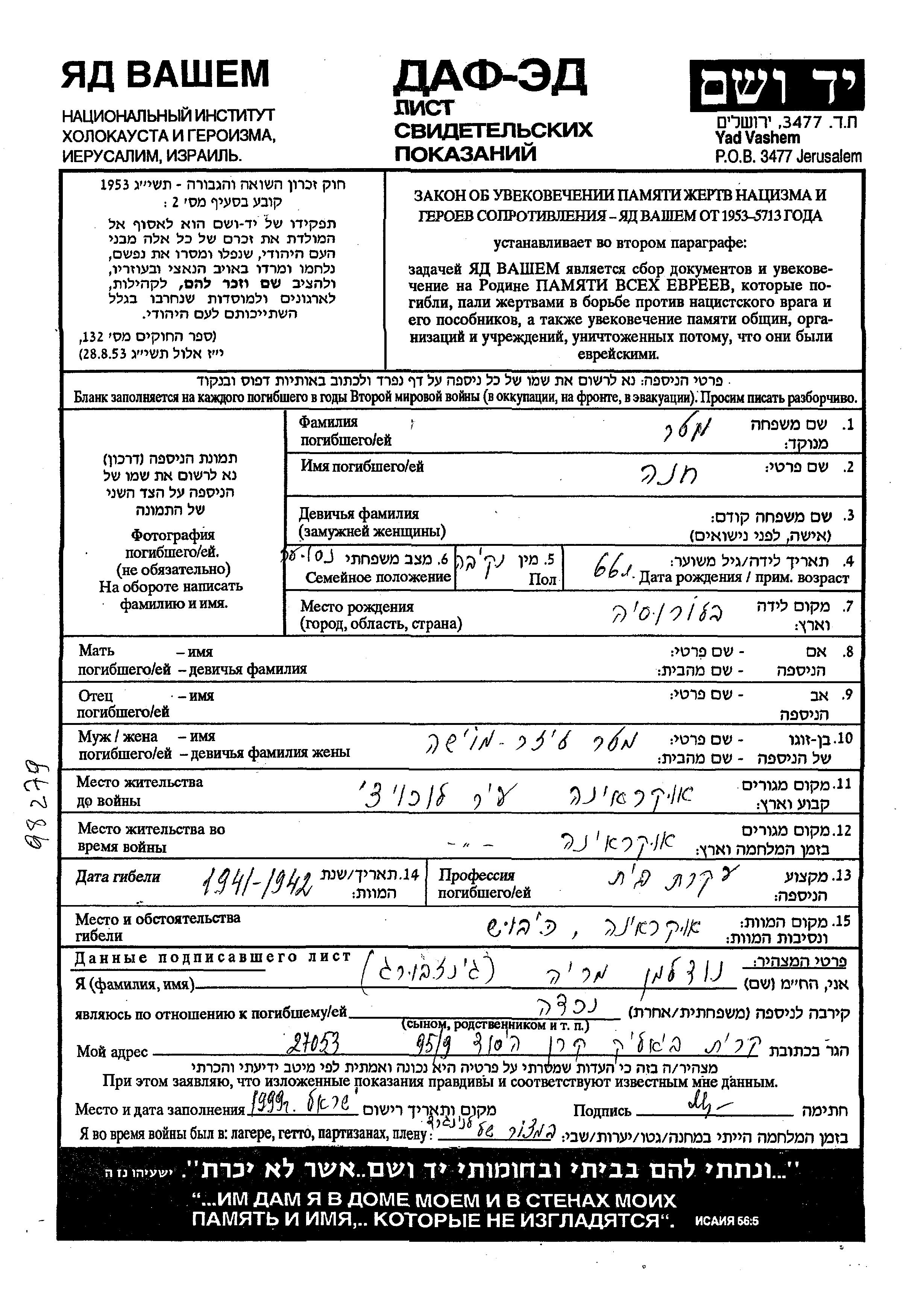 Yad Vashem - Pages of Testimony Names Memorial Collection