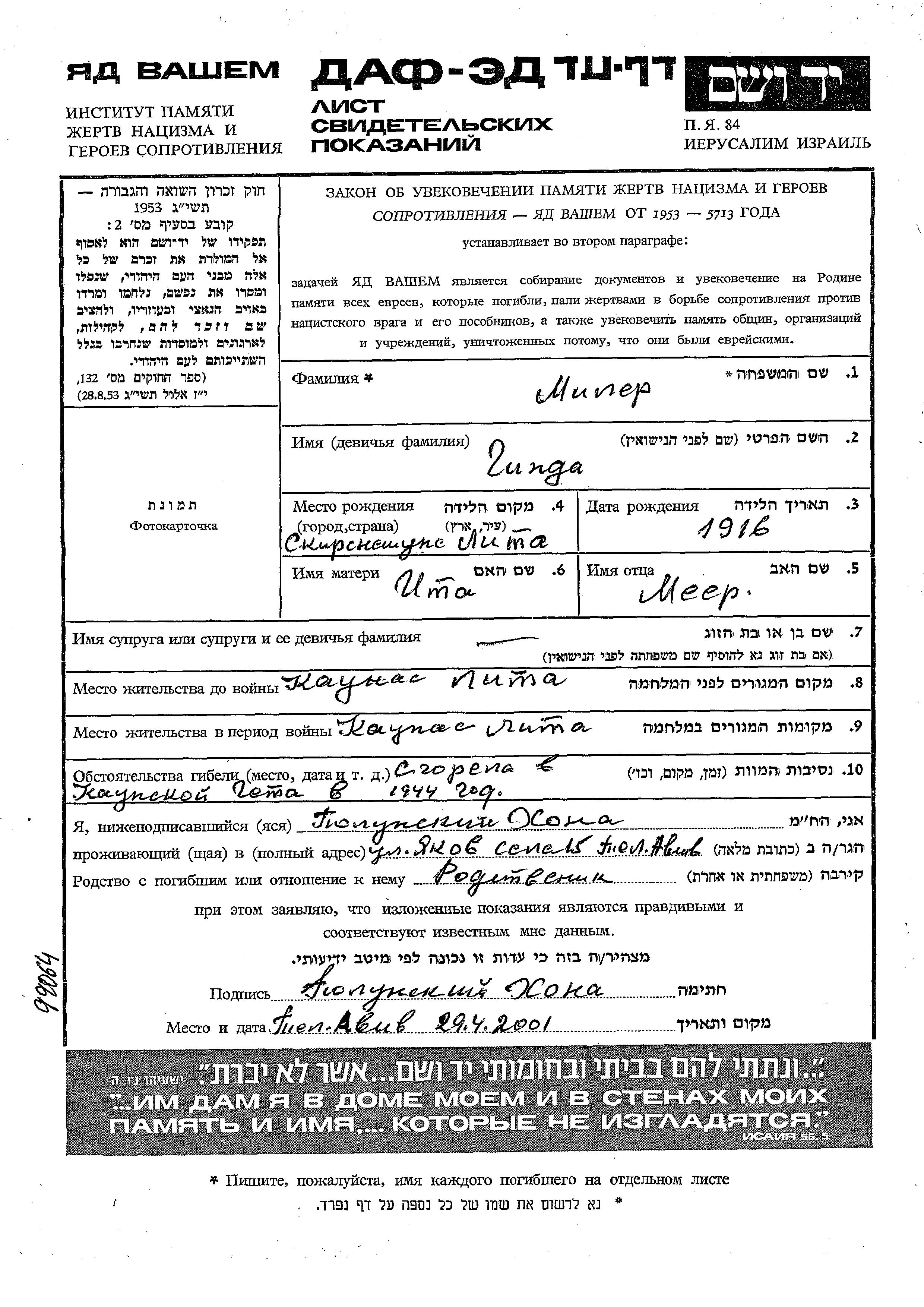 Yad Vashem - Pages of Testimony Names Memorial Collection