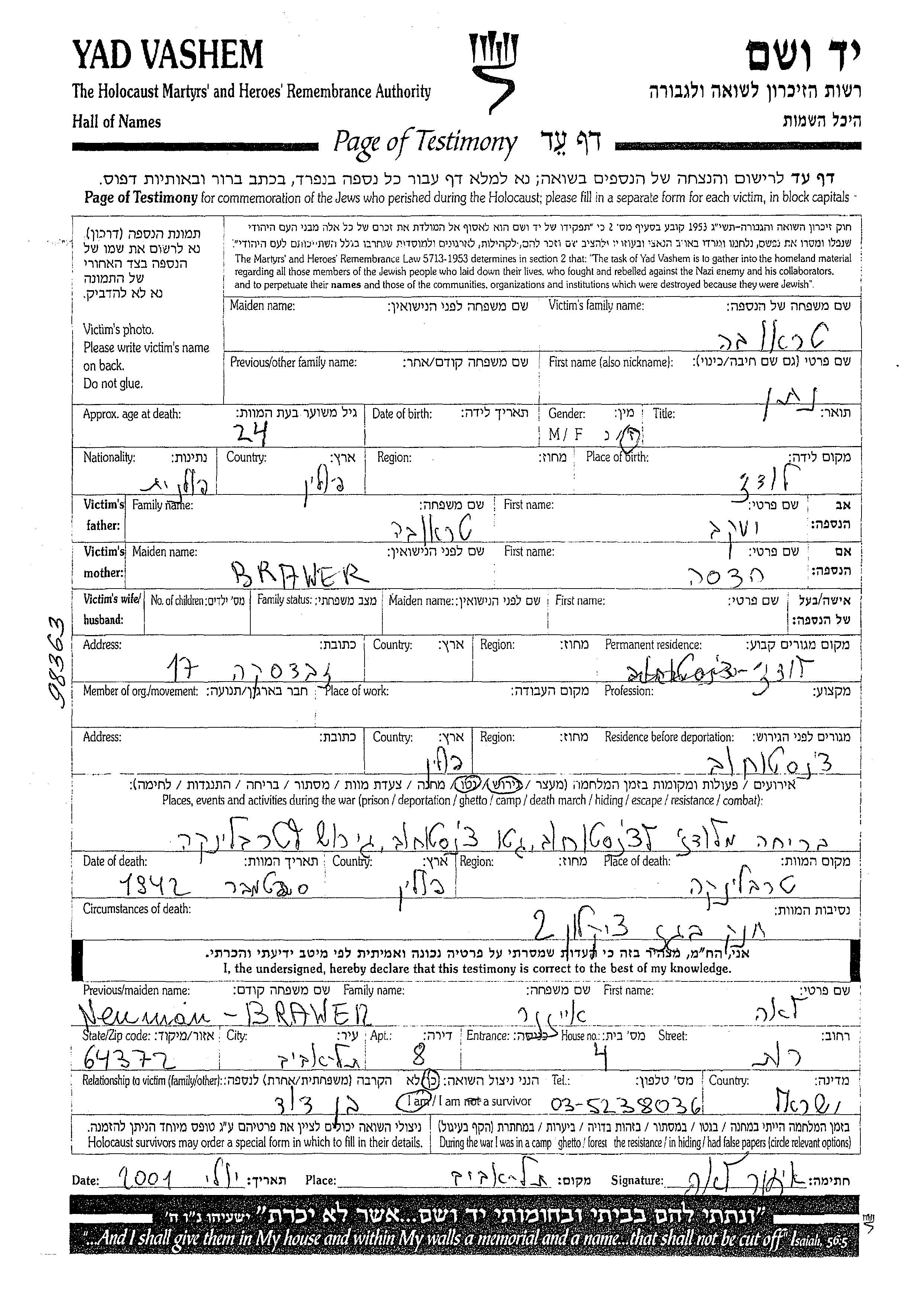 Yad Vashem - Pages of Testimony Names Memorial Collection