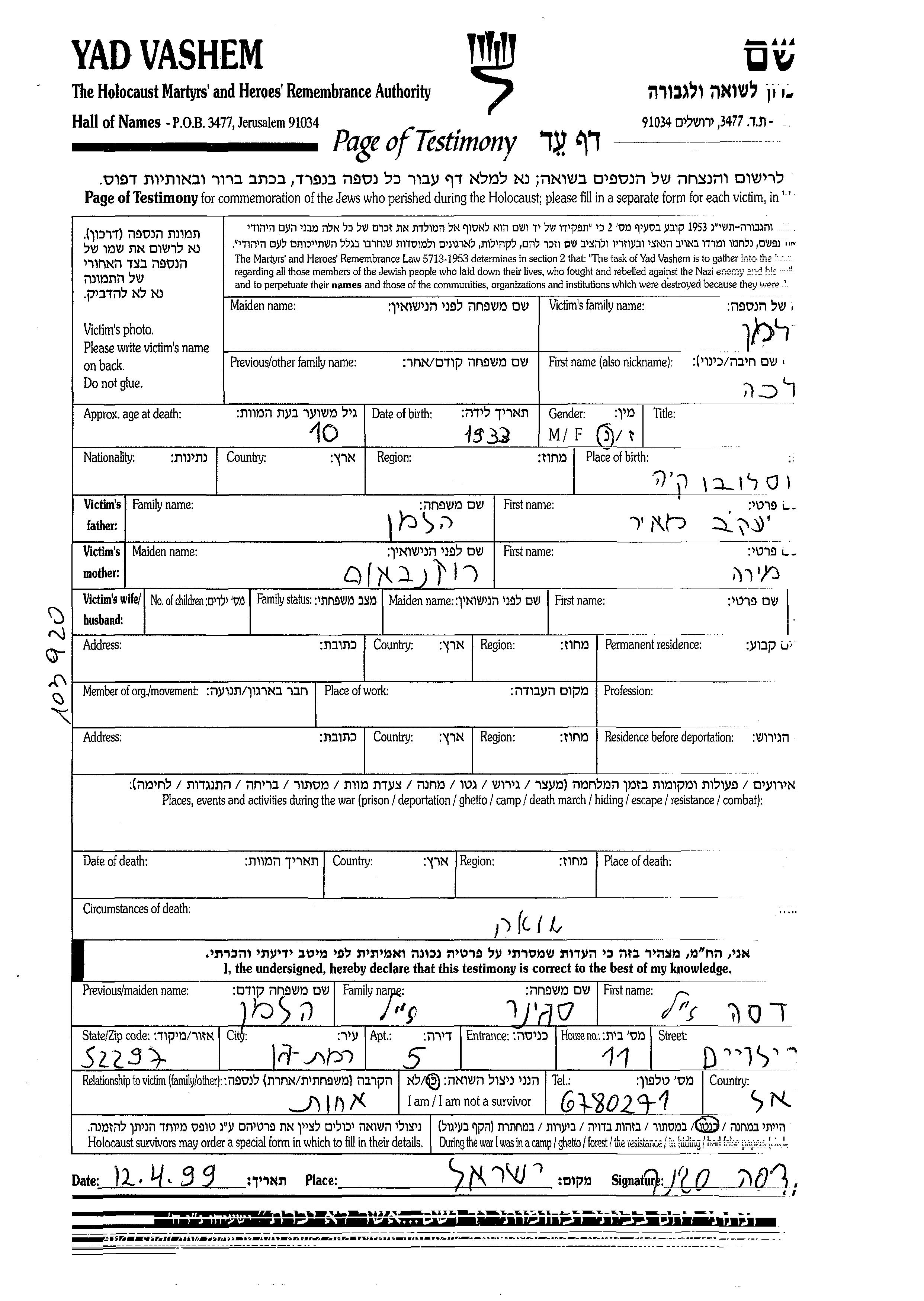Recherche par date de la mort pendant la période de la Shoah: 1933-1945. Sélectionnez 'Exact'; dans la liste pour rechercher l'année exacte, ou sélectionner '+/- 2 ans'; ou '+/- 5 ans